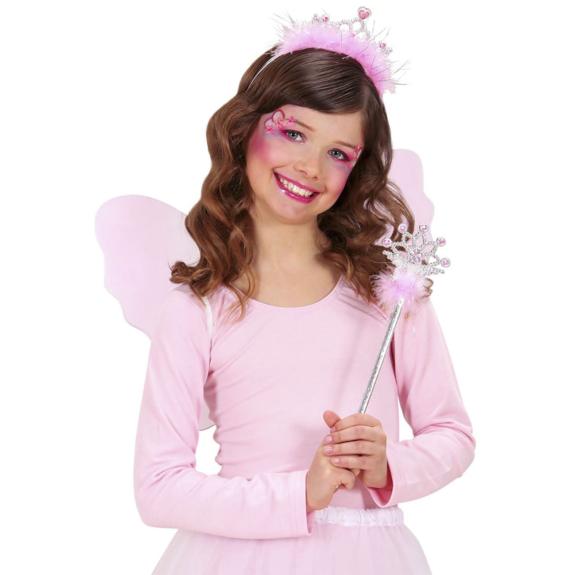 Omschrijving: juwelen tiara & toverstaf met maraboe