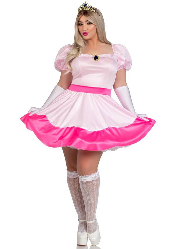 Stap in de wereld van je favoriete videogame met het Pink Princess Plus Size kostuum van Leg Avenue! Dit iconische 4-delige ensemble bestaat uit een prachtige roze jurk, een pin-on juweel broche, een koninklijke kroon en elegante handschoenen. Of je nu een solo-avontuur beleeft of een dynamisch duo vormt met een Mario-kostuum, dit betoverende kostuum is perfect voor elke missie! 🏁💖