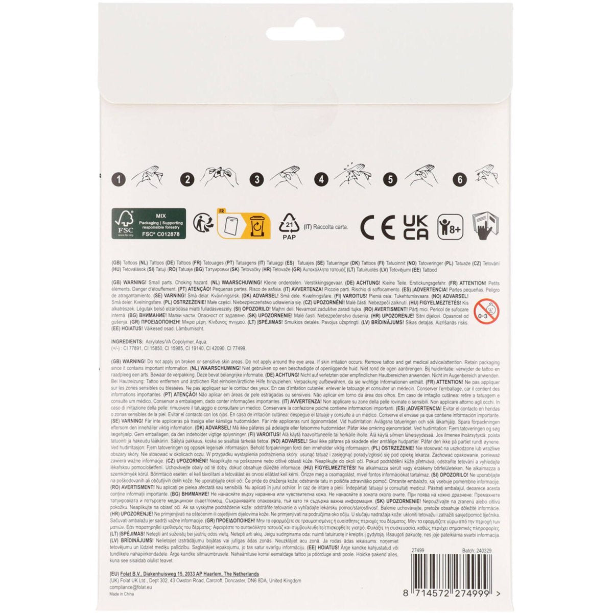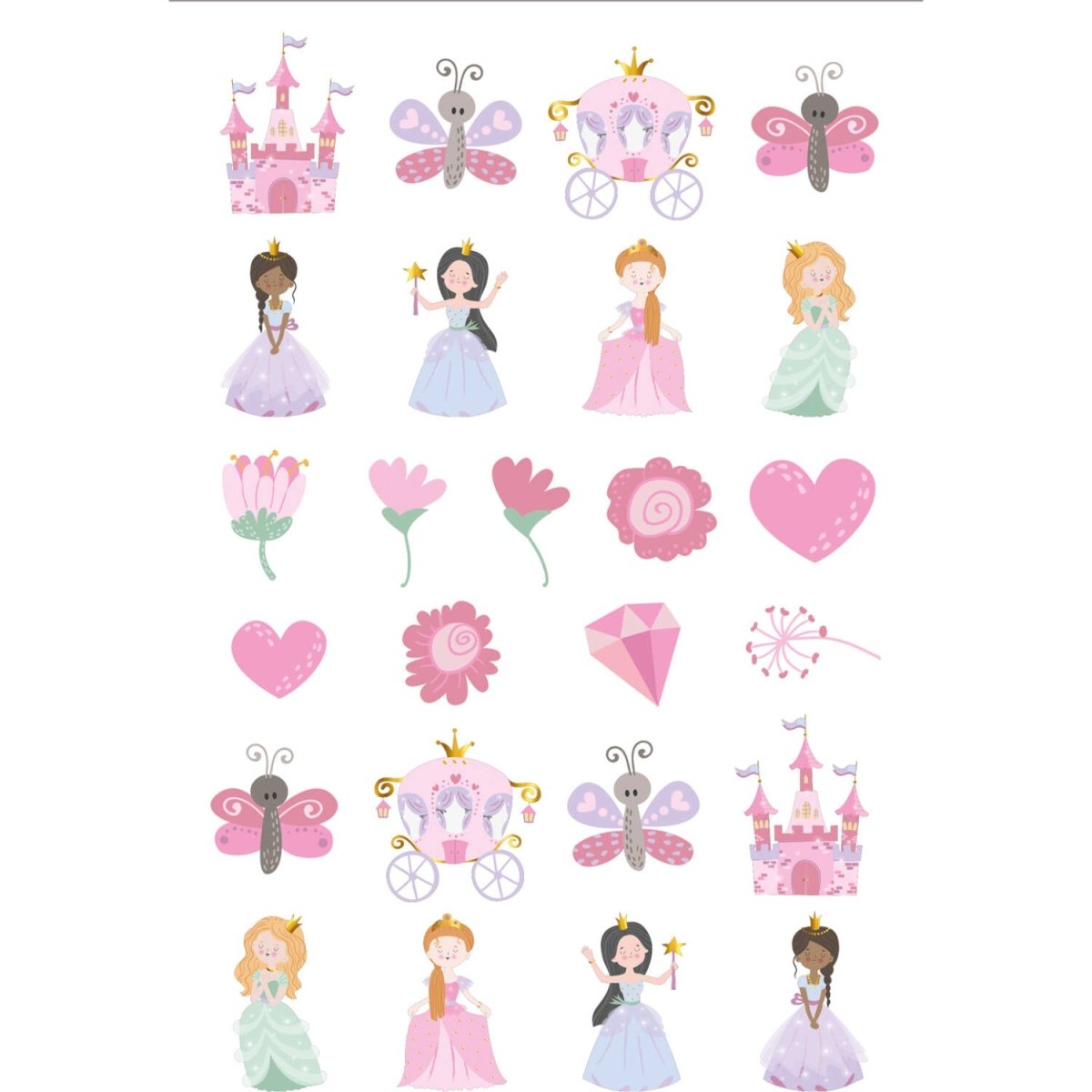 Laat zien wie er princes is! Tattoos - Pretty Princess - 6 stuks. Inhoud: 1 tattoo stickervel met 25 tattoos. Bijvoorbeeld te gebruiken tijdens de volgende feestgelegenheid/feestgelegenheden: Kinderfeestje, Verjaardag, Themafeest. Deze beeldige neptattoo's maken elk princessenfeestje onvergetelijk. Er zit 1 tattoo stickervel in de verpakking met daarop 25 tattoos. Op de achterzijde van de verpakking staat hoe de tattoo's gebruikt moeten worden. Het stickervel is 14 x 21 cm groot. Deze tattoos horen bij de Pretty Princess collectie van Folat. Dit artikel is gemaakt van Acrylaten/VA copolymeer en water.
