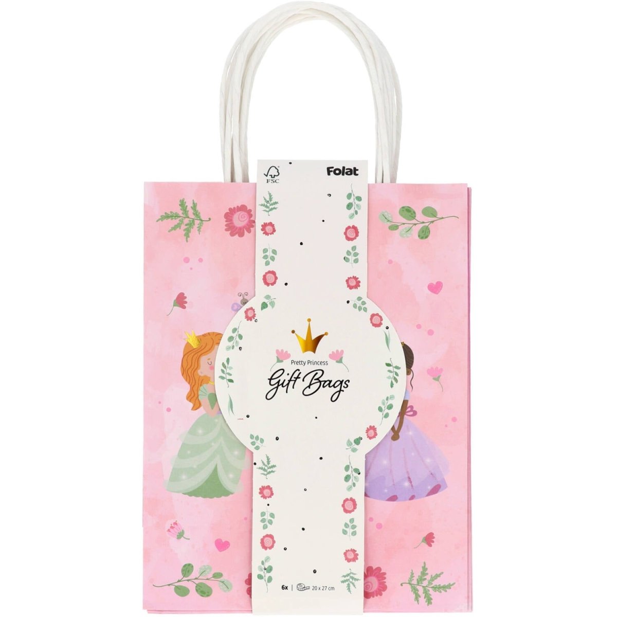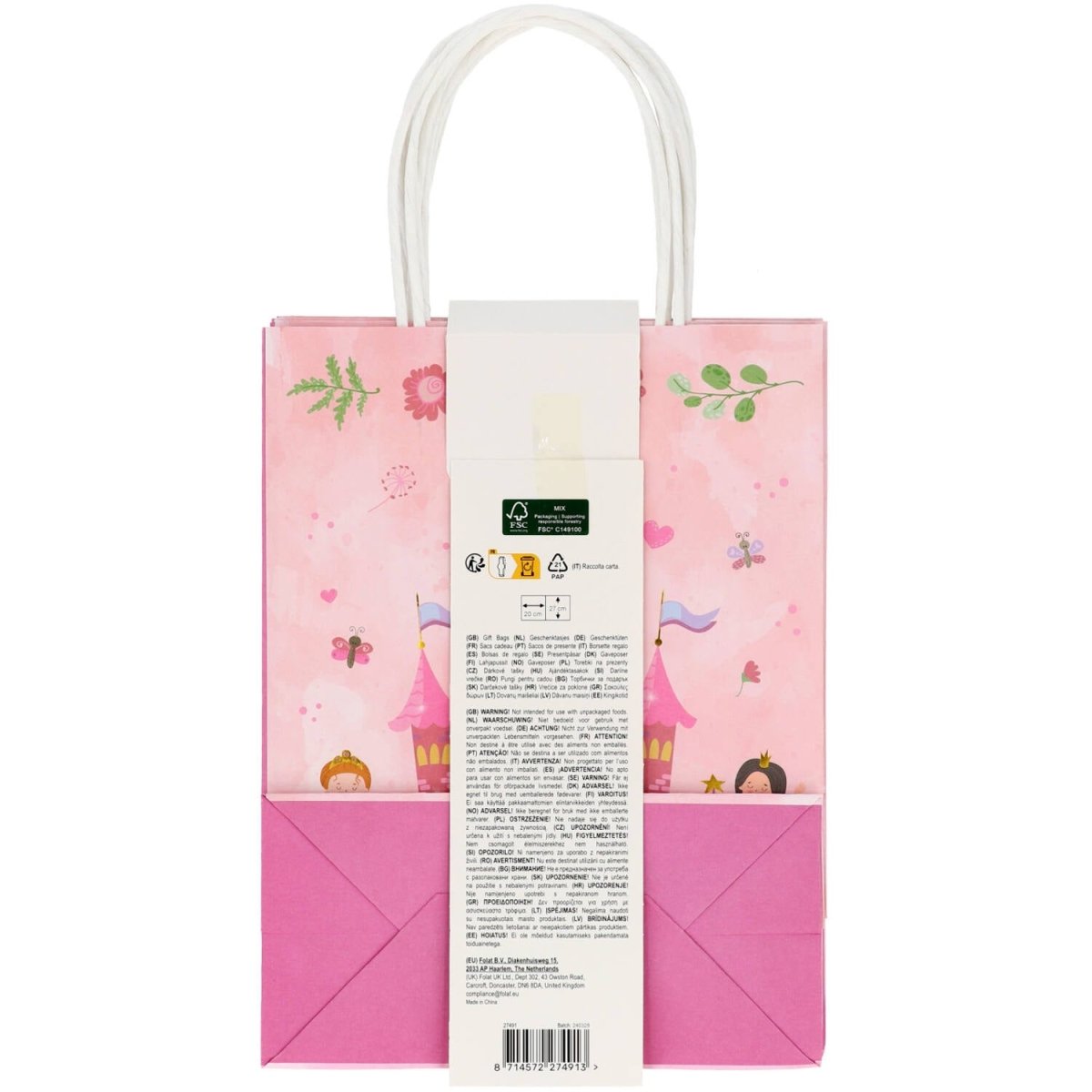 Voor Koninklijke geschenken. Geschenktasjes - Pretty Princess - 20 x 27 cm - 6 stuks. Inhoud: 6 geschenktasjes. Bijvoorbeeld te gebruiken tijdens de volgende feestgelegenheid/feestgelegenheden: Kinderfeestje, Verjaardag. Beeldige geschenktasjes van 20 x 27 x 10 cm. Zachtroze met aan de ene kant twee princessen en de tekst "HAPPY BIRTH DAY" en aan de andere kant een kasteel met twee princessen. Inclusief hengsel zijn de tasjes ongeveer 37 cm hoog. Met gouden details die dankzij de gebruikte hotstamping techniek echt glinsteren. Deze geschenktasjes horen bij de Pretty Princess collectie van Folat. Dit artikel is gemaakt van papier.