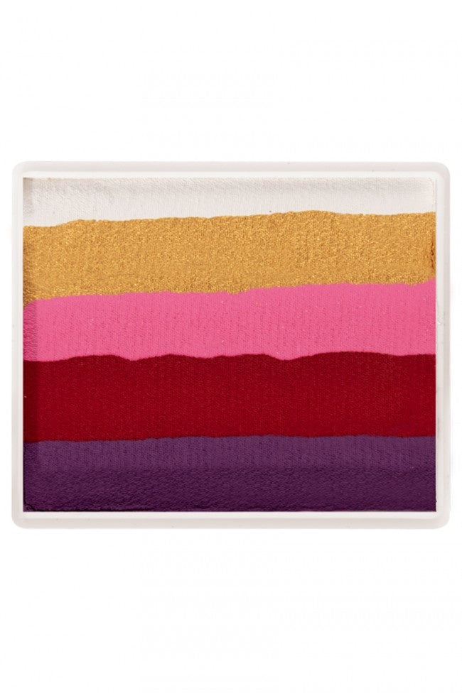 De Splitcake schmink van PXP Professional Colours biedt een samengestelde mix van verschillende kleuren waterschmink. Dit type schmink staat ook bekend als rainbowcake of colorblocks. De Splitcake schmink van partyXplosion bevat diverse kleuren waterschmink, netjes naast elkaar gepresenteerd in één doosje. Wanneer je met deze Splitcake schmink werkt, gebruik je de zogenaamde one stroke techniek.