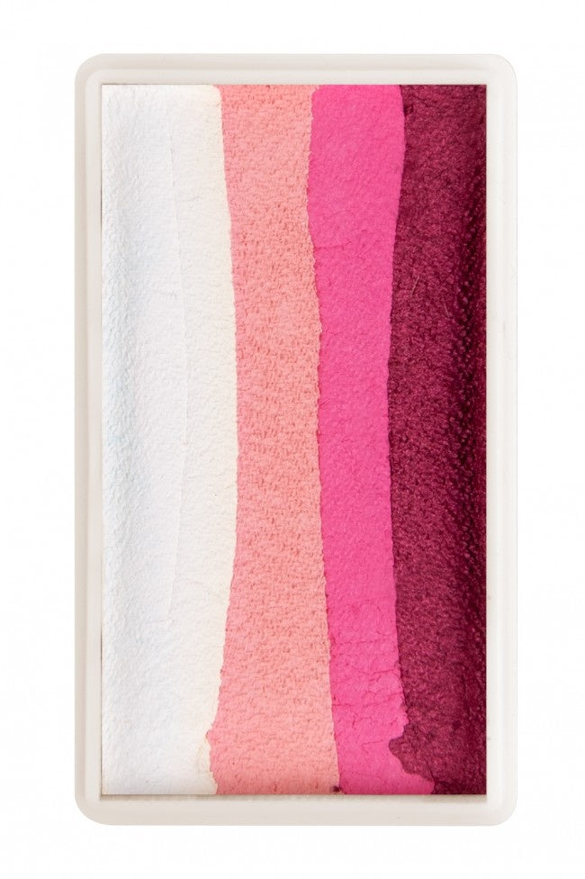 De Splitcake schmink van PXP Professional Colours biedt een samengestelde mix van verschillende kleuren waterschmink. Dit type schmink staat ook bekend als rainbowcake of colorblocks. De Splitcake schmink van partyXplosion bevat diverse kleuren waterschmink, netjes naast elkaar gepresenteerd in één doosje. Wanneer je met deze Splitcake schmink werkt, gebruik je de zogenaamde one stroke techniek.