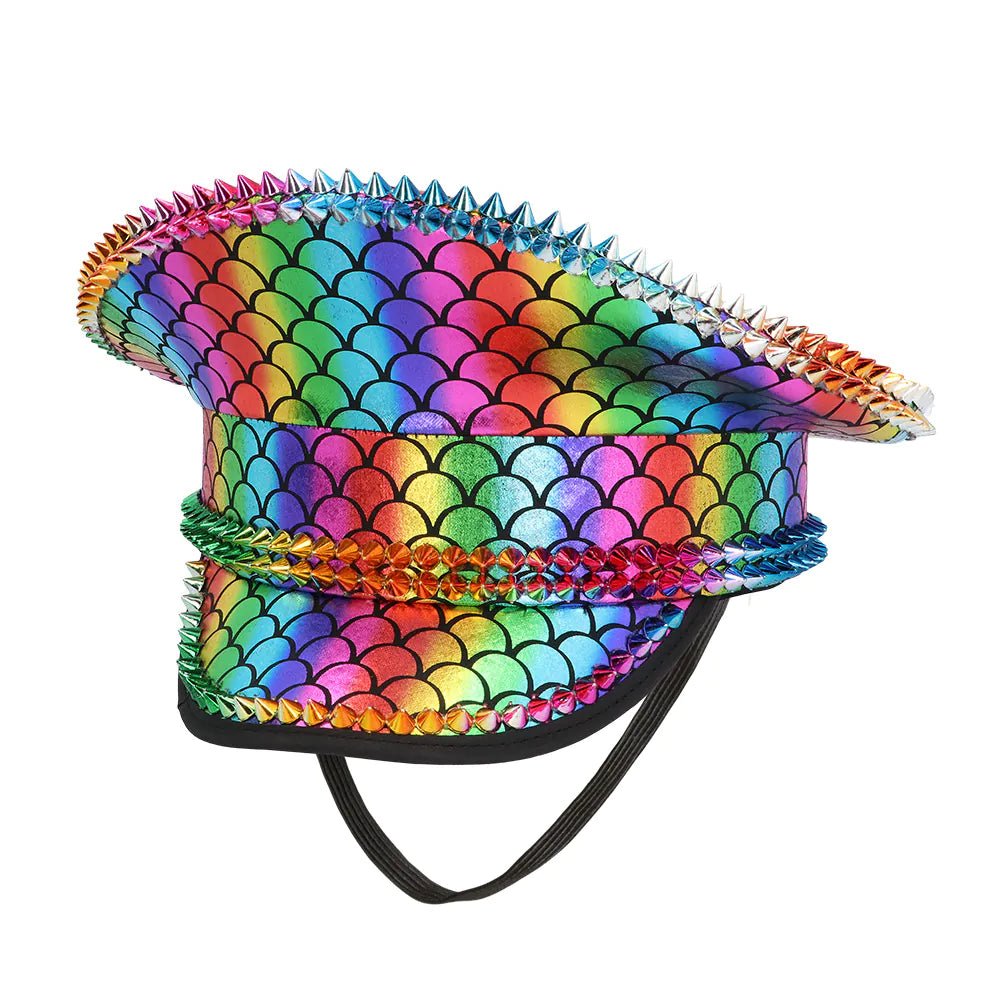 Deze opvallende pet in metallic regenboog kleuren zorgt voor een stijlvolle, trendy look. De studs geven de cap een extra vleugje luxe en stoerheid. Of je nu naar Pride gaat, carnaval gaat vieren of naar een foute party gaat, deze pet is het ultieme accessoire om je look compleet te maken.