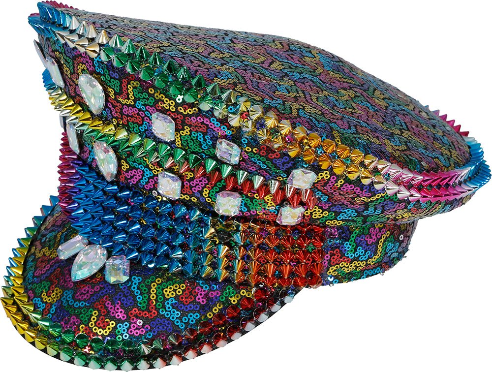 Val op tijdens elk feest met deze kleurrijke politie pet in regenboogkleuren. De glanzende studs geven de hoed een stoere en feestelijke uitstraling, perfect voor themafeesten, carnaval of festivals.