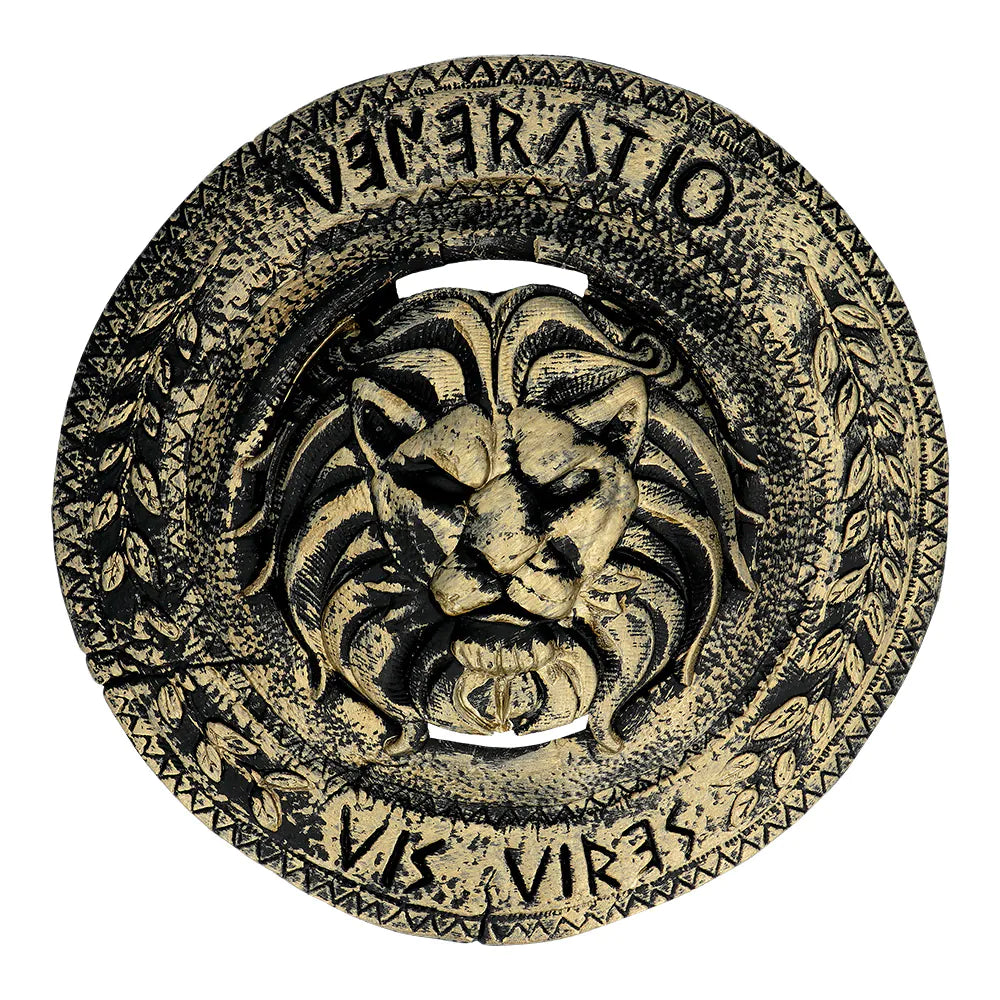 Een stoer 2-delig wapenset waar elk kind enthousiast van wordt. De set bestaat uit een zwaard met gouden handvat en bijpassend gouden schild met leeuwenkop. Een mooie accessoireset om een stoer ridder, viking of romeins gladiator kostuum compleet te maken voor Carnaval. Ook erg leuk als cadeautje!