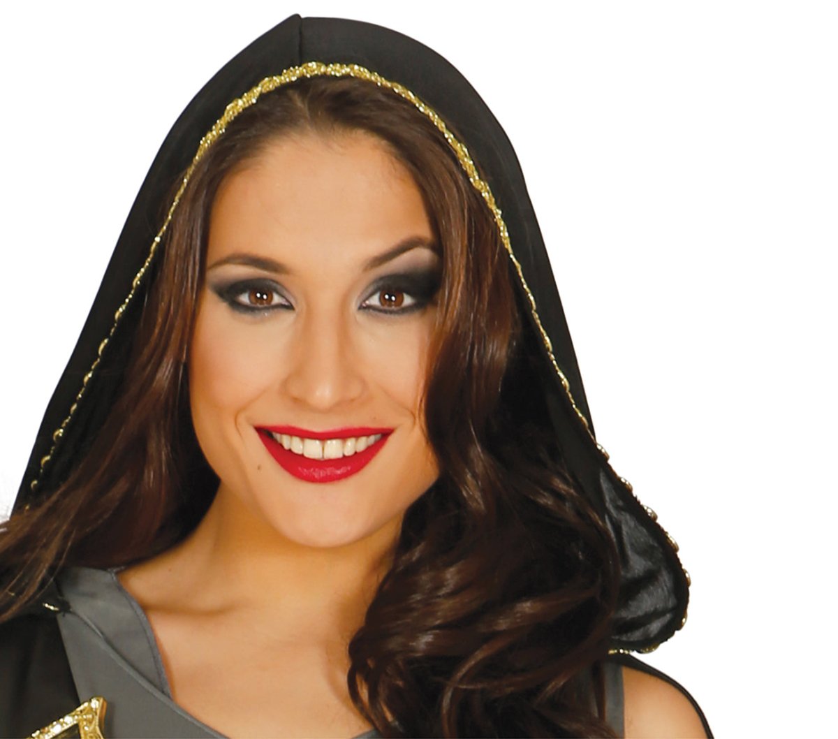 Inhoud: robin hood jurk, cape met capuchon, riem en mouwen