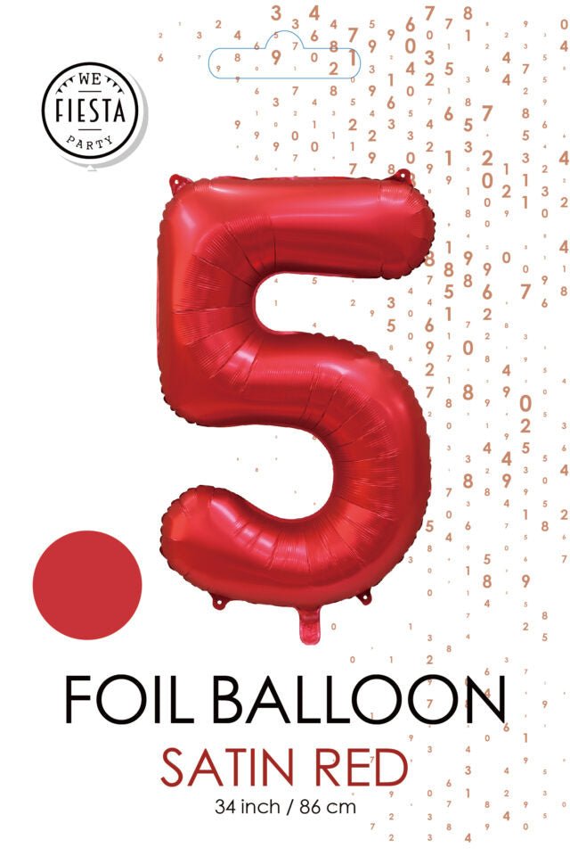 Rode Cijfer Ballon 5 Jaar Glans 86cm