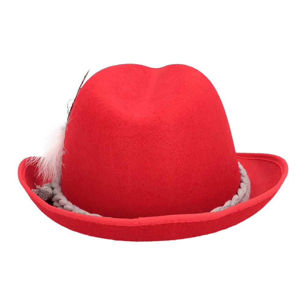 Met zijn klassieke ontwerp en opvallende rode kleur, is dit rode Hansl Tiroler hoedje de perfecte accessoire voor bierfeesten, Beierse vieringen en themafeesten waarbij een vleugje folklore in de outfit passend is.
