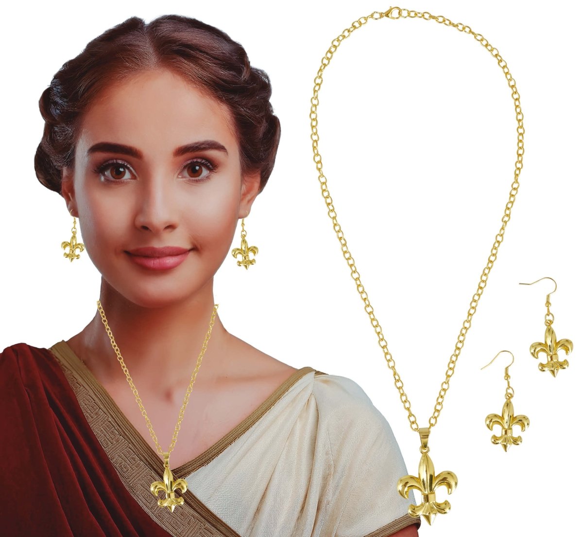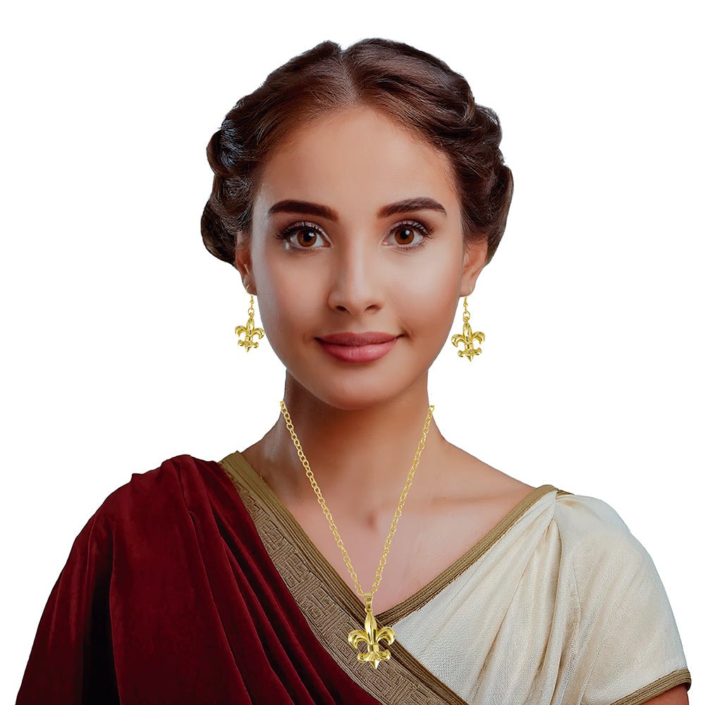 Deze elegante sieradenset bestaat uit een stijlvolle ketting en bijpassende oorbellen. De set heeft een tijdloos ontwerp in een prachtige gouden kleur en is perfect om elke outfit een luxe uitstraling te geven.