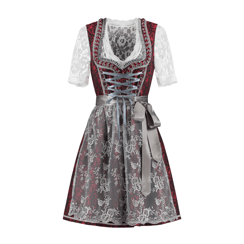 Rood Zilveren Dirndl Jurk Oktoberfest 2 delig