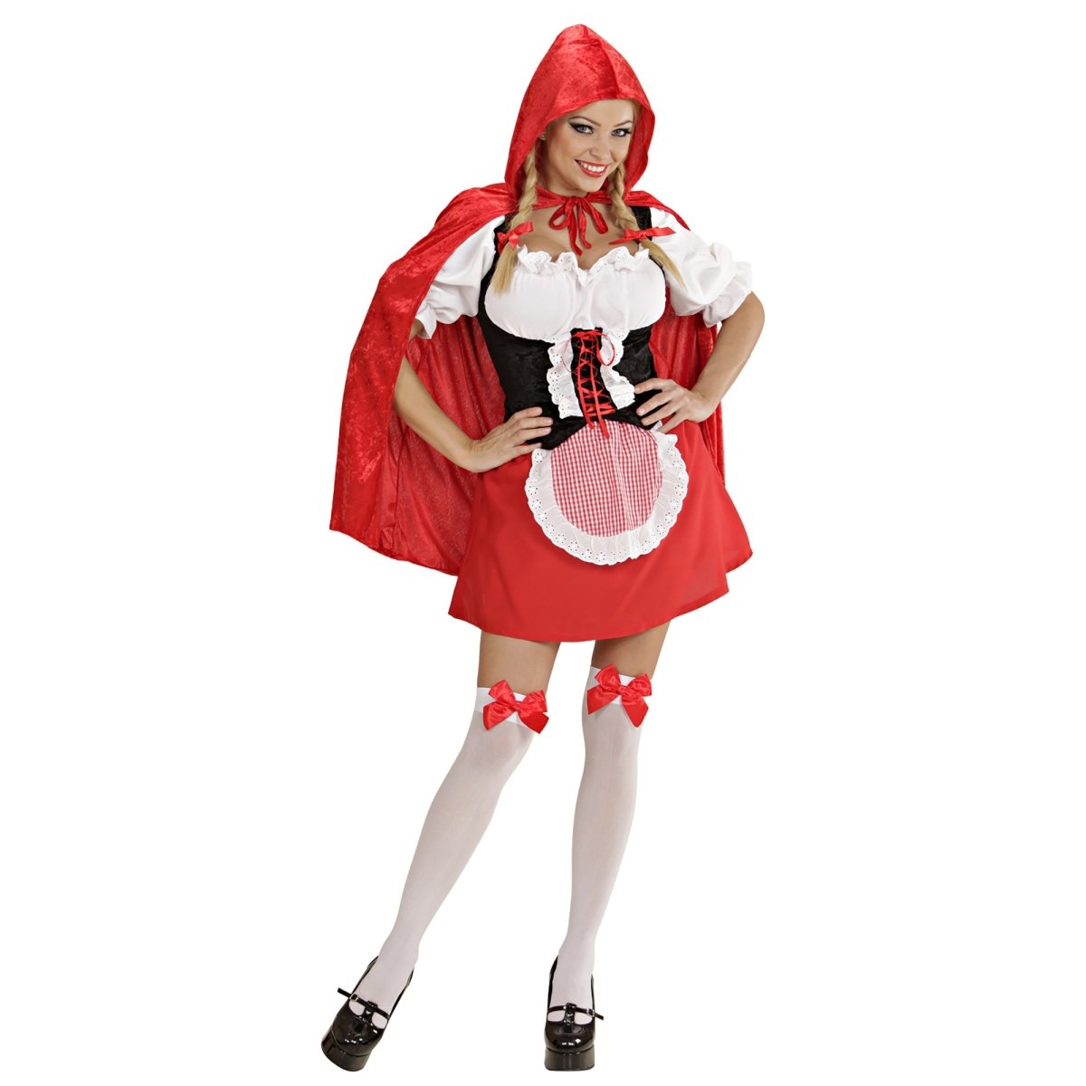 Omschrijving: rood capelet shirt met korset, rok met schort, capelet met capuchon