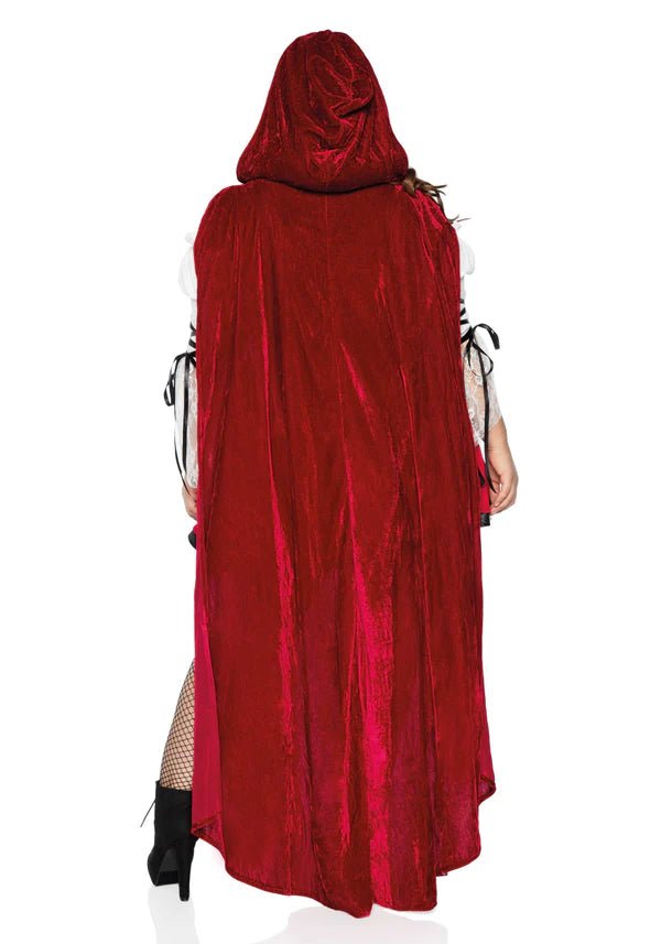 Dit Red Riding Hood kostuum in plus size is een verleidelijke en speelse twist op het klassieke sprookje! Dit 2-delige ensemble bestaat uit een kanten afgewerkte boerenjurk met een vetersluiting in de taille en een satijnen splitrok, aangevuld met een lange fluwelen capuchoncape en een elegante satijnen choker. Of je nu naar een Halloweenfeest gaat of carnaval viert, in dit kostuum versla je gegarandeerd elke wolf! 🌲✨