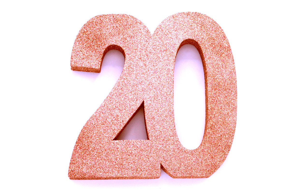 Rose Goud Tafeldecoratie Cijfer 20 Glitter 20,5cm
