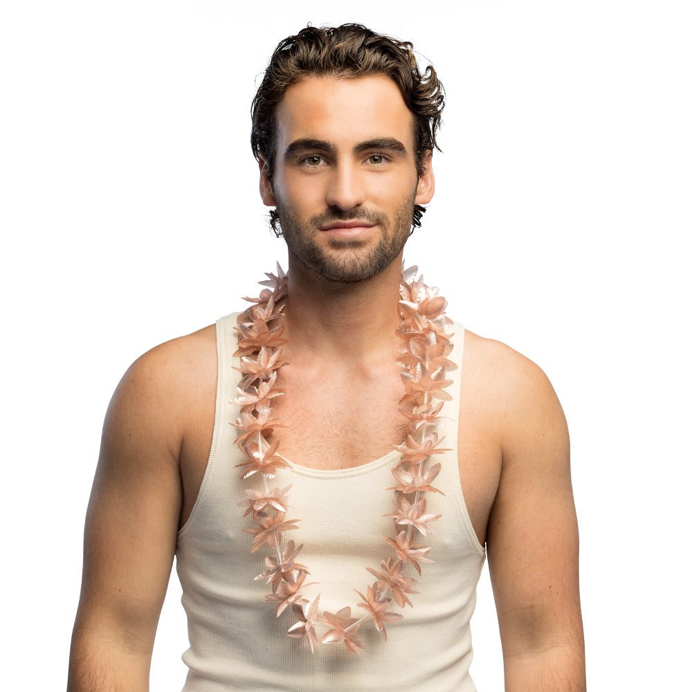 De Hawaïkrans Kahoku roségoud is een elegante en glanzende krans die elke zomerse outfit of feestdecoratie een tropische en luxe uitstraling geeft. Perfect als blikvanger tijdens strandfeesten, festivals en Hawaï-party’s.