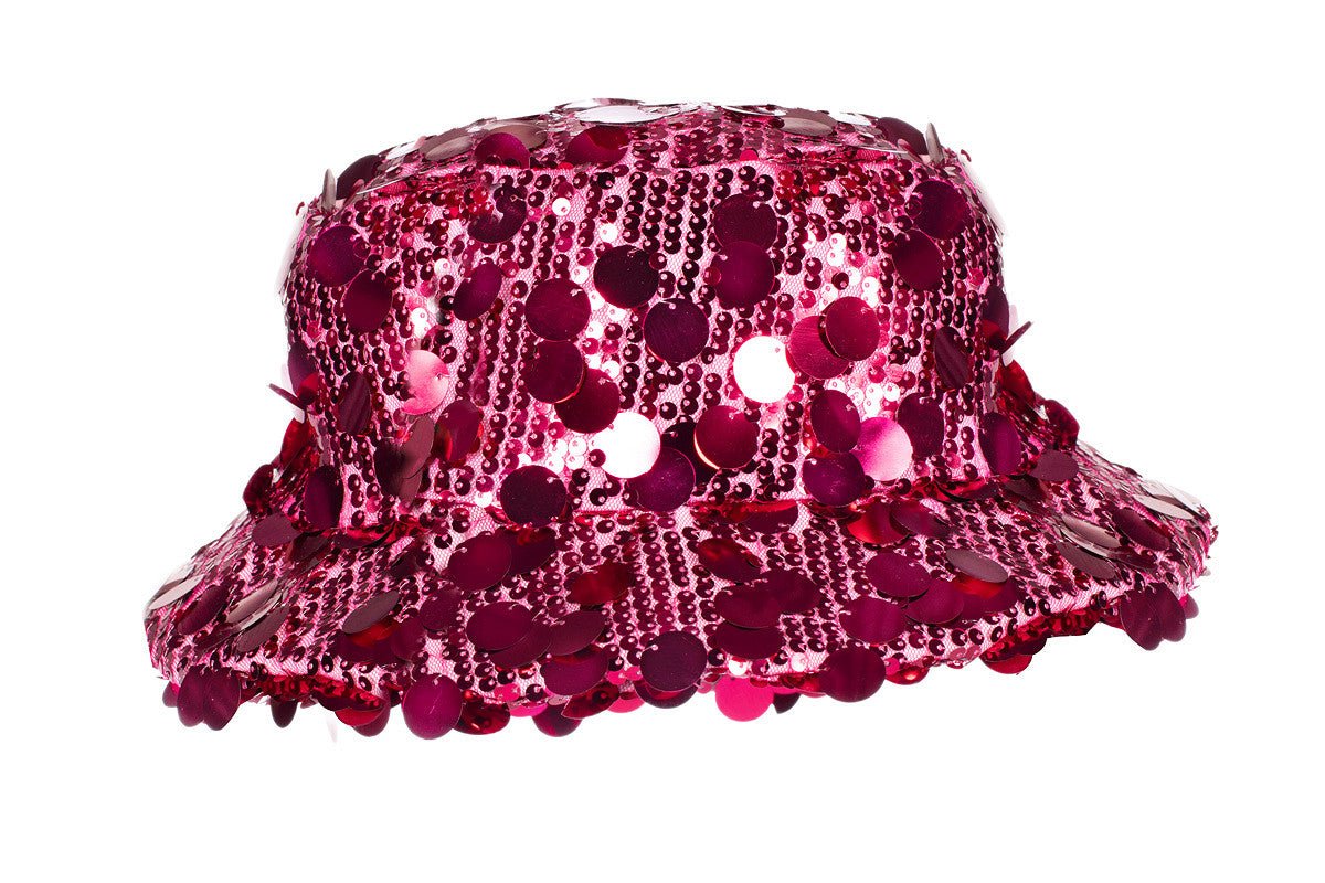 Leuk roze vissershoedje met glinsterende pailletten. Perfect als accessoire voor themafeesten, verkleedpartijen of festivals.
