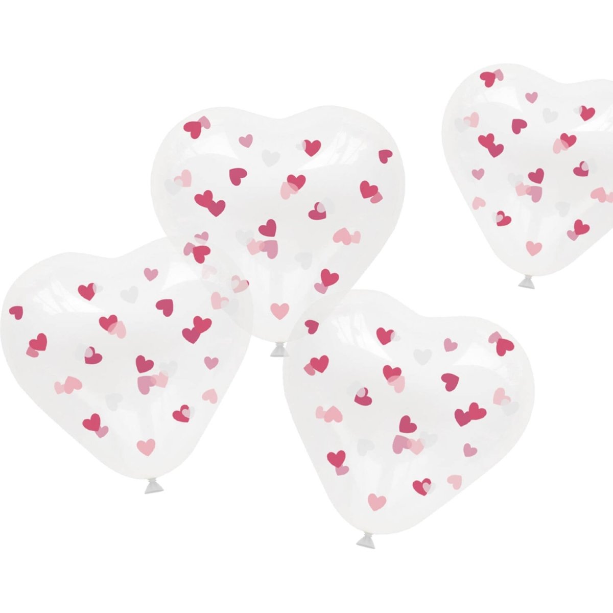 Ballonnen Hartvormig met Roze Confetti 30cm - 4 stuks. Inhoud: 4 latex ballonnen. Kleur: roze. Bijvoorbeeld te gebruiken tijdens de volgende feestgelegenheid/feestgelegenheden: Valentijnsdag, Bruiloft en Jubileum. Elke ballon is 12 inch/30 cm. Het artikel is gemaakt van latex.