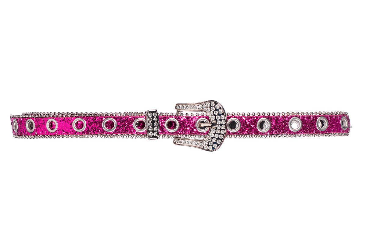 Opvallende riem met glitter en strass-steentjes, inclusief roze gesp. Perfect als accessoire voor feestjes, thema-evenementen of verkleedoutfits.