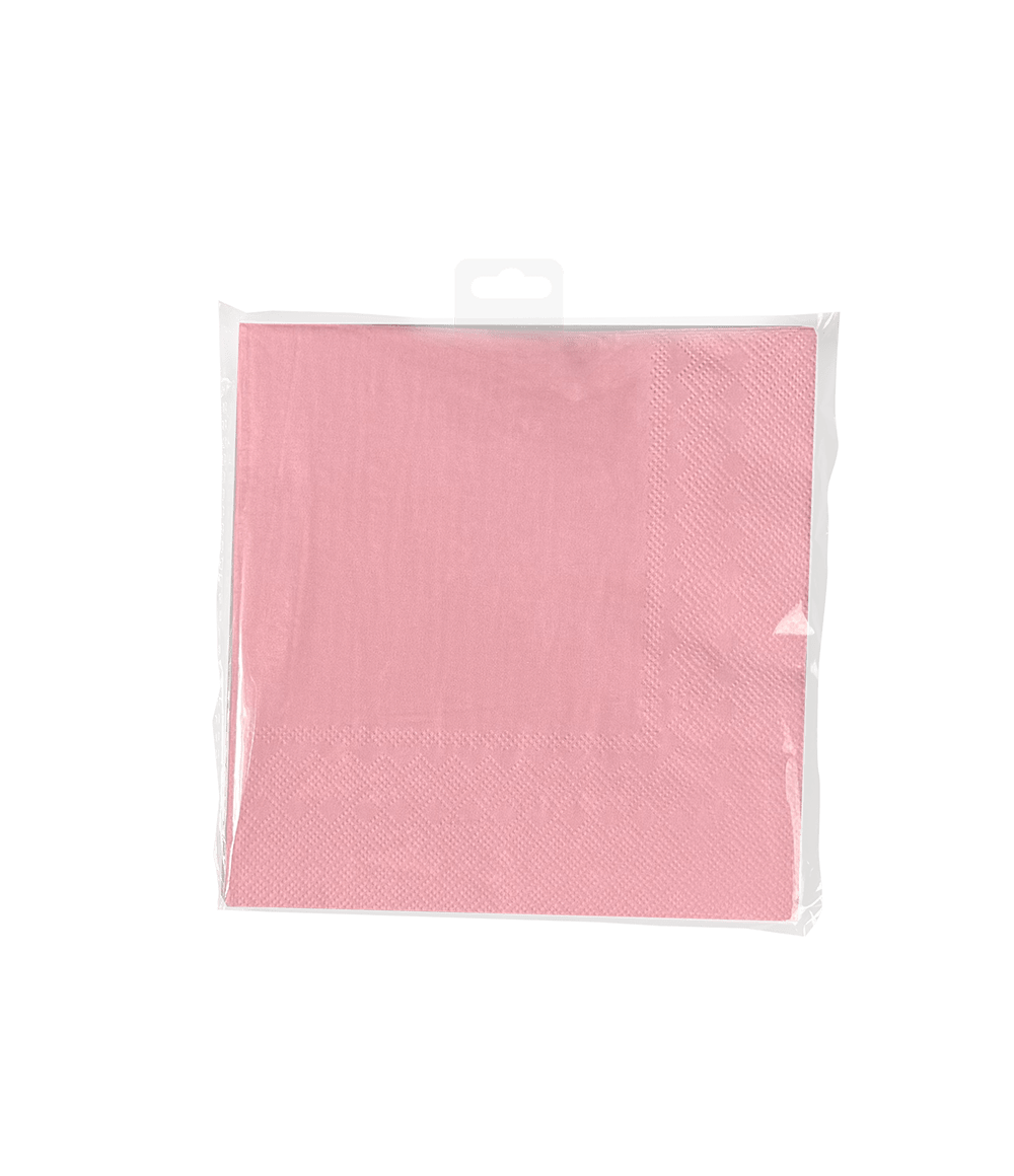 De Napkins - Pastel pink zijn de perfecte decoratie artikelen op een feestje waar de kleur pastel roze het thema is. Deze servetten zijn 16,5 x 16,5cm, zitten per 8 verpakt en passen perfect bij de overige pastel roze-kleurige artikelen zoals de confetti, bordjes, bekertjes, tafelkleden, snackboxes en vlaggenlijn. Presenteer deze items bij elkaar, zodat het voor de klant direct duidelijk is waar deze collectie uit bestaat. Deze servetten zijn van papier, wat het tot een milieuvriendelijke keuze maakt!