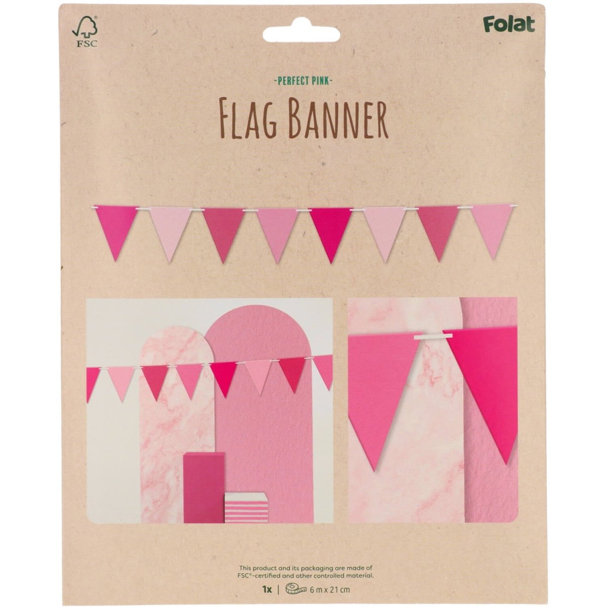Mooi roze is ook feestelijk! Vlaggenlijn - Perfect Pink - 6 meter. Inhoud: 1 vlaggenlijn. Bijvoorbeeld te gebruiken tijdens de volgende feestgelegenheid/feestgelegenheden: Verjaardag, Themafeest, Geboorte meisje. Een vlaggenlijn met mooie roze vlaggen in vier verschillende tinten roze. Er zitten 16 vlaggen op één lijn. De vlaggen zijn 17 x 21 cm. De lijn is gemaakt van wit polyster lint. De vlaggen kunnen afzonderlijk over het lint worden geschoven. Dit artikel is gemaakt van FSC papier.
