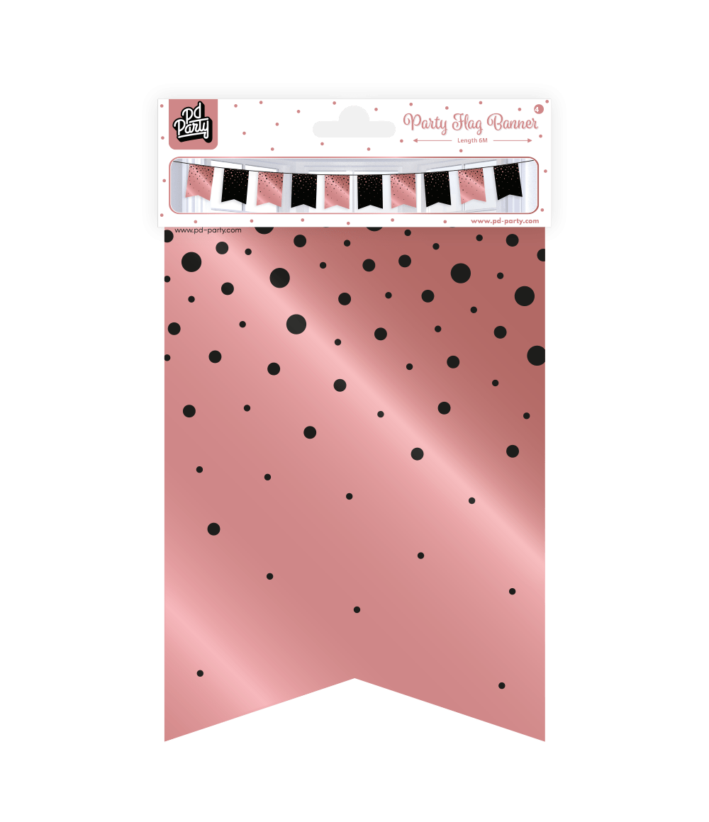 Deze roségoud met zwarte vlaggetjes geven jouw feestje extra glamour, en mogen niet ontbreken op een Rosegold/Blackparty!