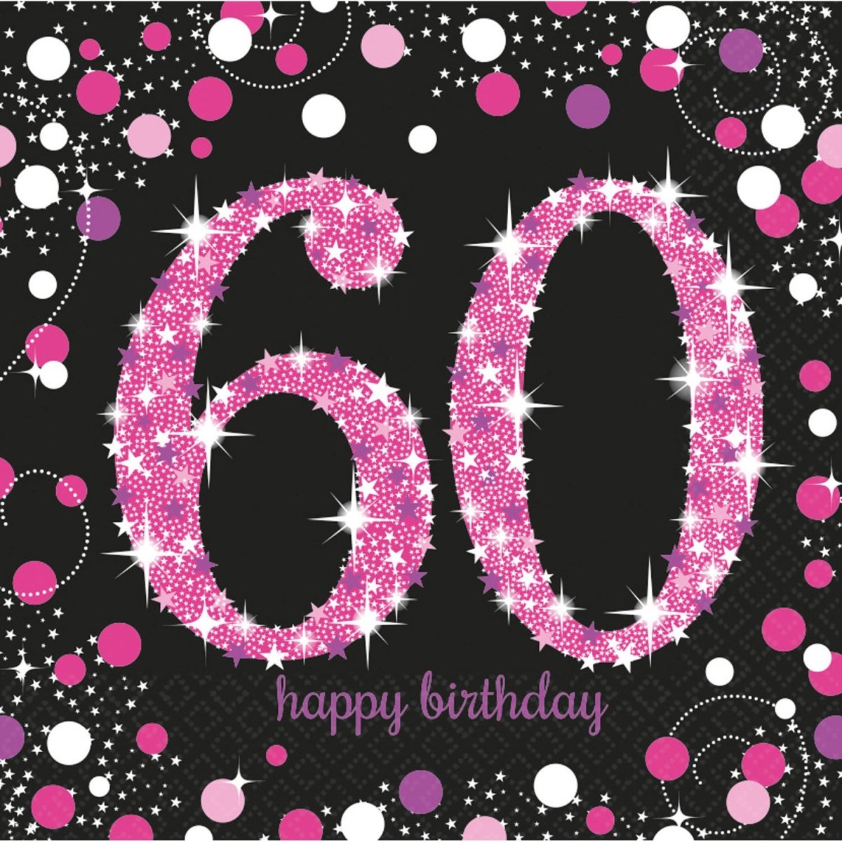 Servetten 60 Jaar Happy Birthday Roze 33cm 16st