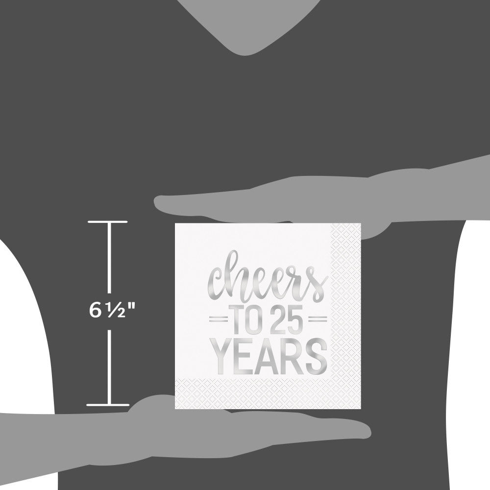 Servetten Cheers To 25 Year Zilver 25cm 16st