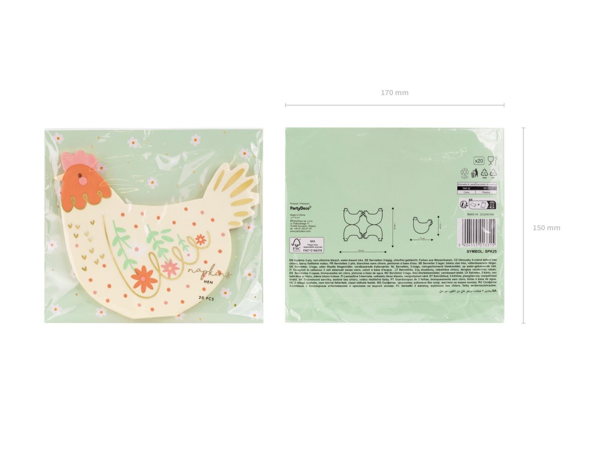 Kurka papieren servetten, kleurenmix met goudopdruk, formaat uitgevouwen ca. 32 x 26 cm, formaat gevouwen ca. 16 x 13 cm.