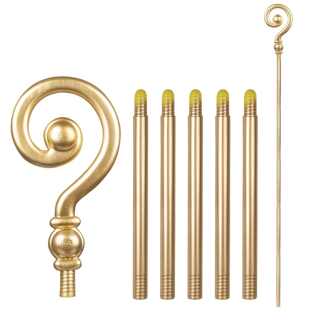 Maak een Sinterklaaskostuum compleet met deze mooie 6-delige Sinterklaasstaf. De staf is gemaakt van plastic en gemakkelijk in elkaar te zetten door alle 6 de delen in elkaar te draaien. Eenmaal in elkaar gezet heeft de staf een lengte van 185 cm. Ideaal als toevoeging voor iedereen die Sinterklaas gaat spelen tijdens de intocht, pakjesavond of andere Sinterklaasvieringen.