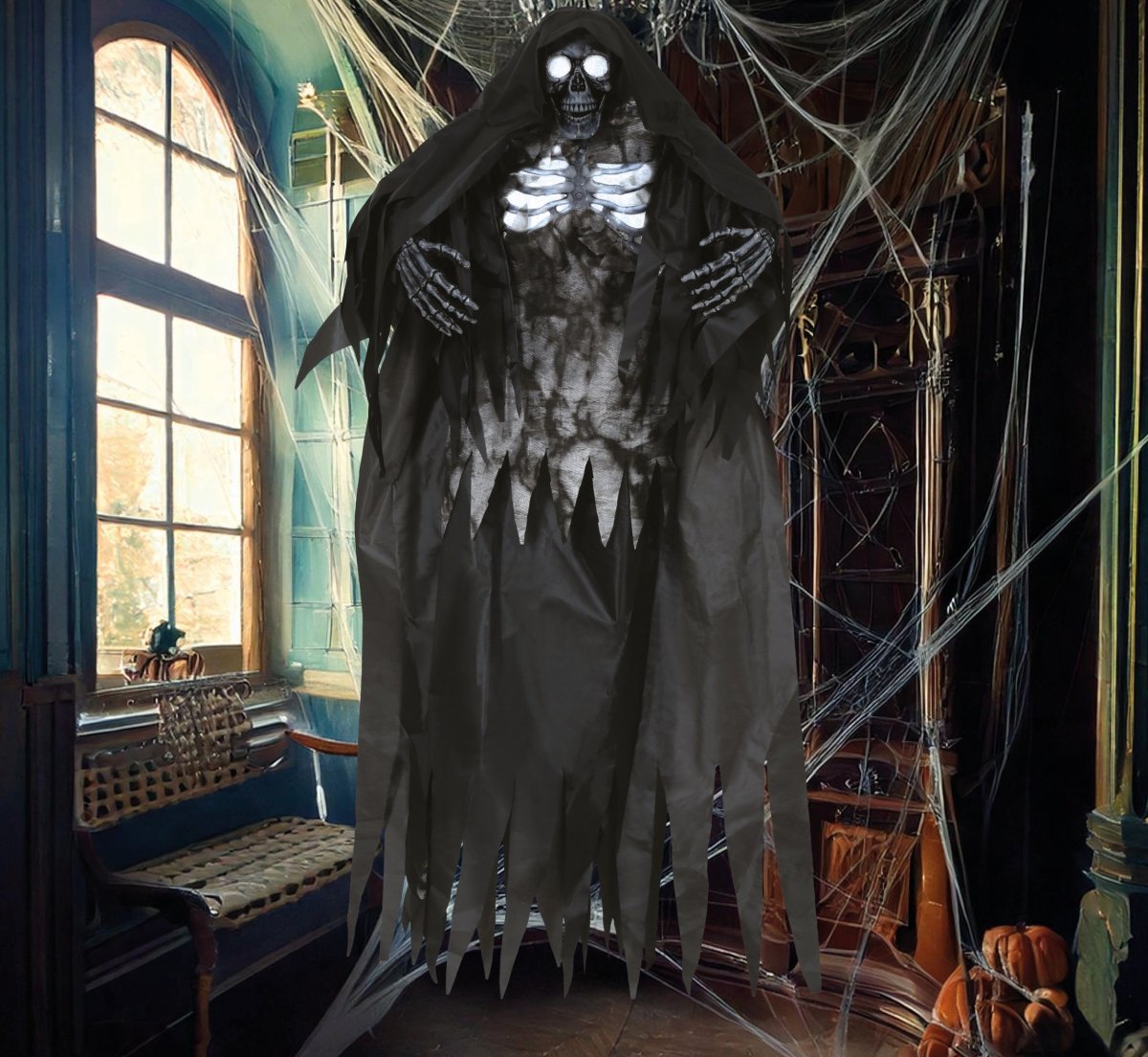 Skelet Hangdecoratie Zwart Met Licht En Geluid 1,6m