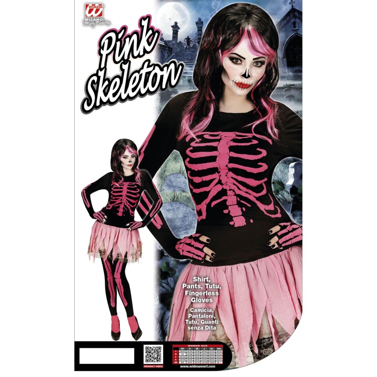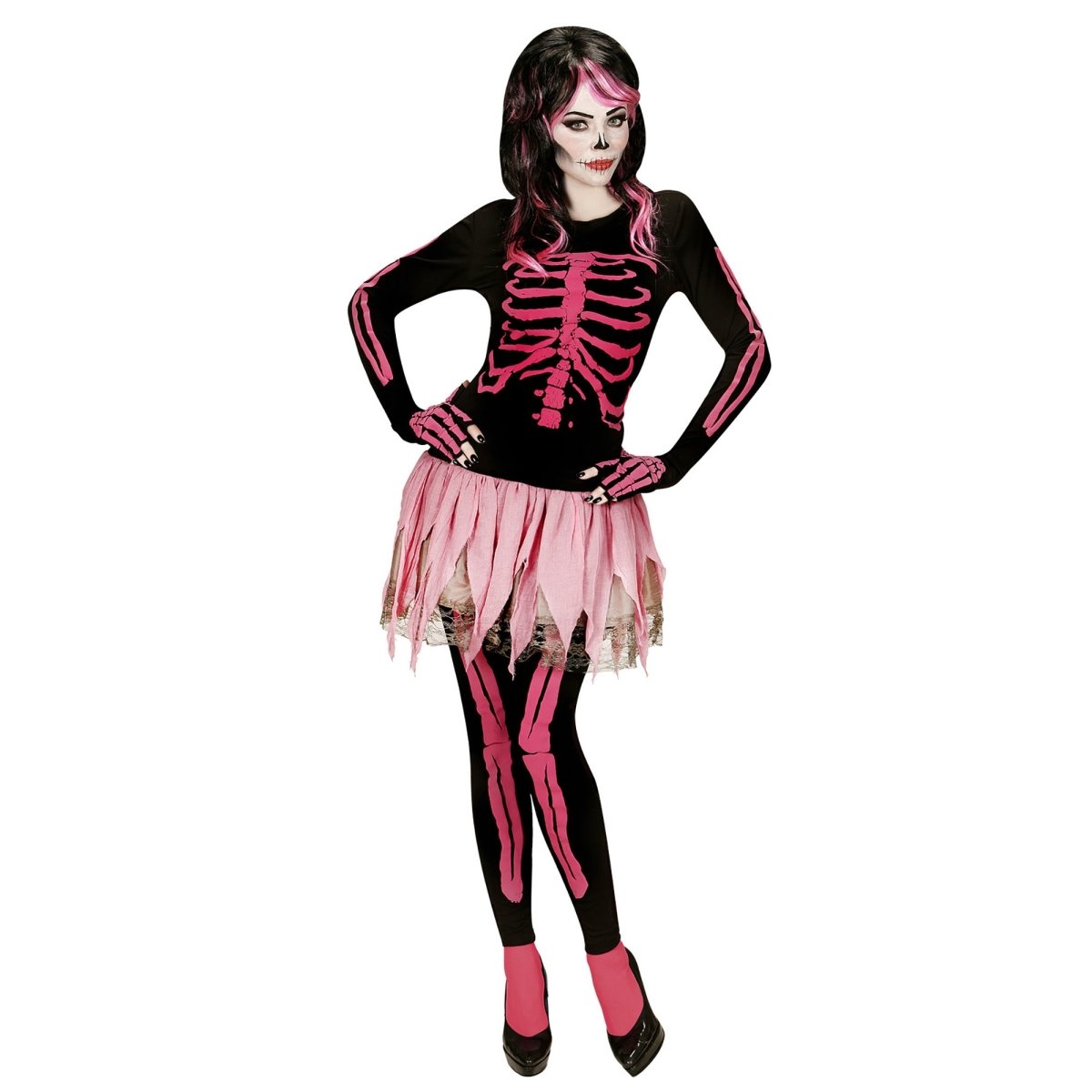 Skelet Kostuum Zwart Roze Dames 4 delig