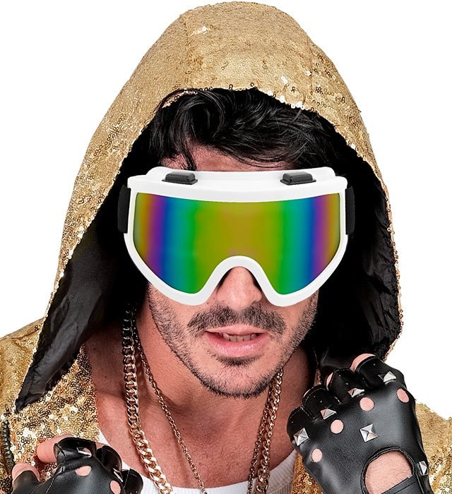 Maak je outfit compleet met deze 80s ski bril in het wit, een echte blikvanger voor retro- en themafeesten.