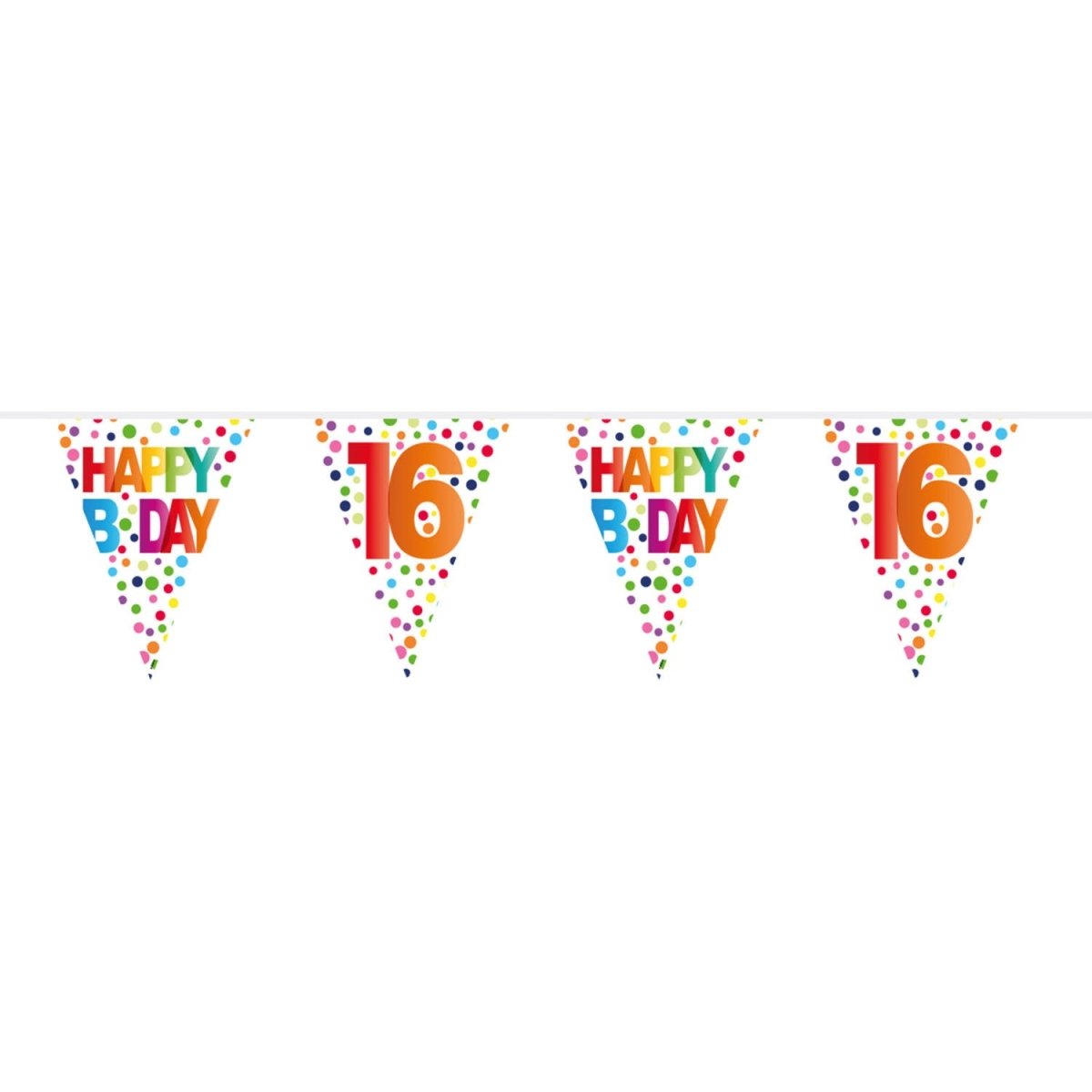 16 Jaar Happy Bday Dots Vlaggenlijn - 10 meter. Inhoud: 1 vlaggenlijn. Kleur: Meerkleurig. Bijvoorbeeld te gebruiken tijdens de volgende feestgelegenheid/feestgelegenheden: Verjaardag, Tienerfeestje en Jubileum. Deze vlaggenlijn is 10 meter lang. Het artikel is gemaakt van plastic.