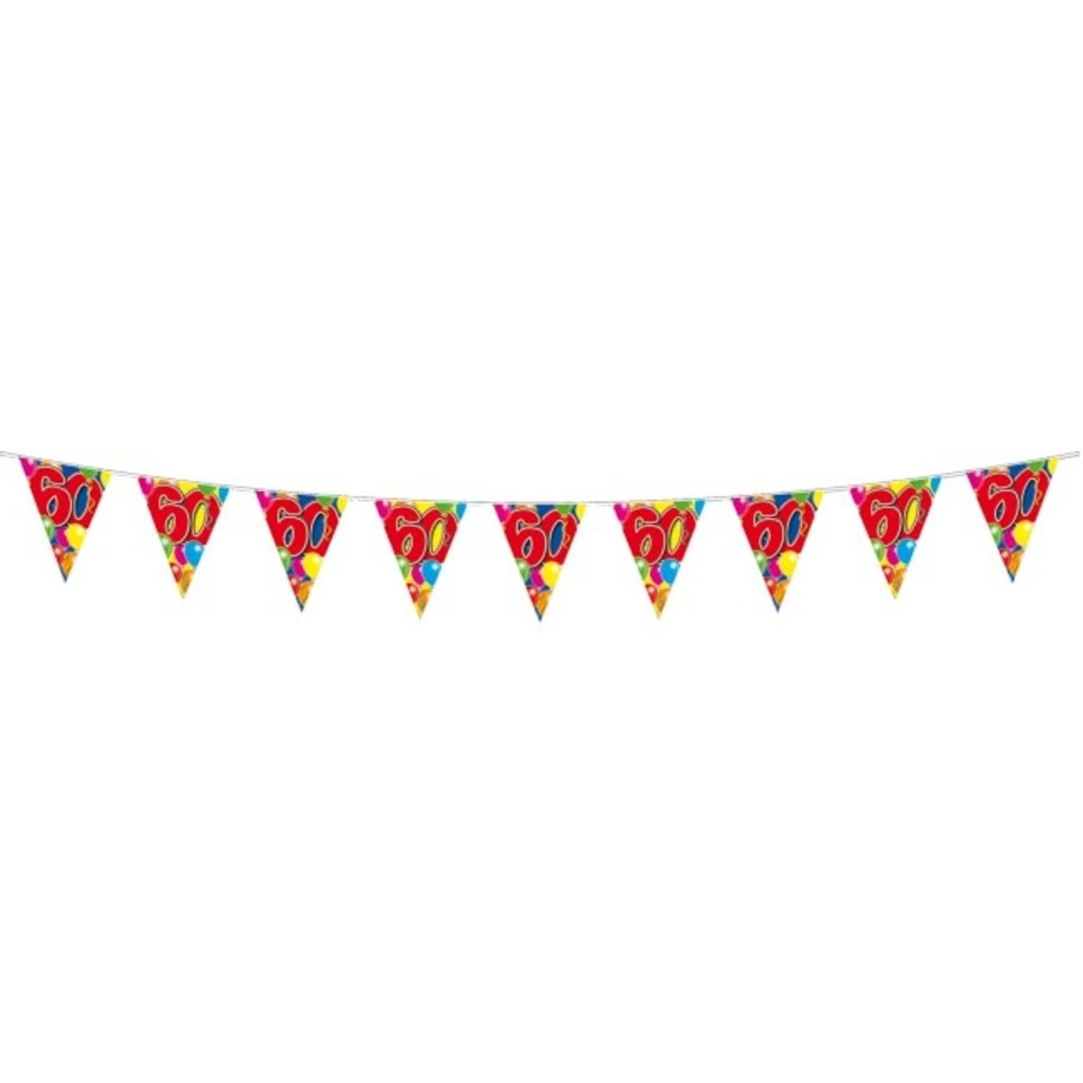 60 Jaar Slinger Balloons - 10 meter. Inhoud: 1 vlaggenlijn. Kleur: Meerkleurig. Productthema: Balloons. Bijvoorbeeld te gebruiken tijdens de volgende feestgelegenheid/feestgelegenheden: verjaardag. Deze slinger is 10 meter lang. Het artikel is gemaakt van plastic.
