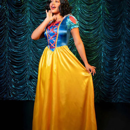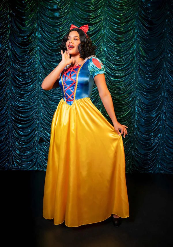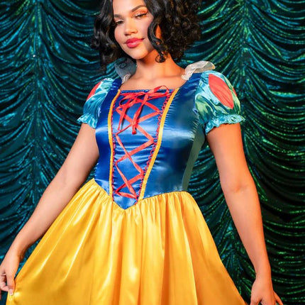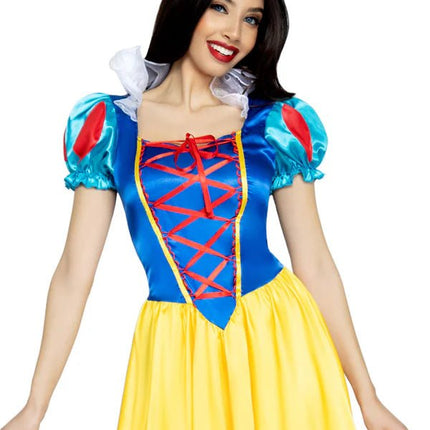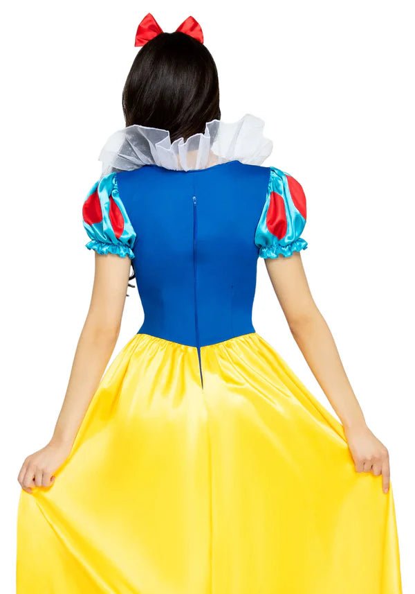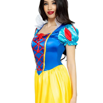 Word de mooiste prinses van het bos in het 2-delige Sneeuwwitje kostuum van Leg Avenue! Dit kostuum bestaat uit een lange jurk met een schattig linten detail, pofmouwtjes en een opstaand kraagje, samen met een bijpassende haarband met strik. Perfect voor Halloween, sprookjesachtige themafeesten of een iconisch kostuum voor een prinsessen-look! 👑🌲