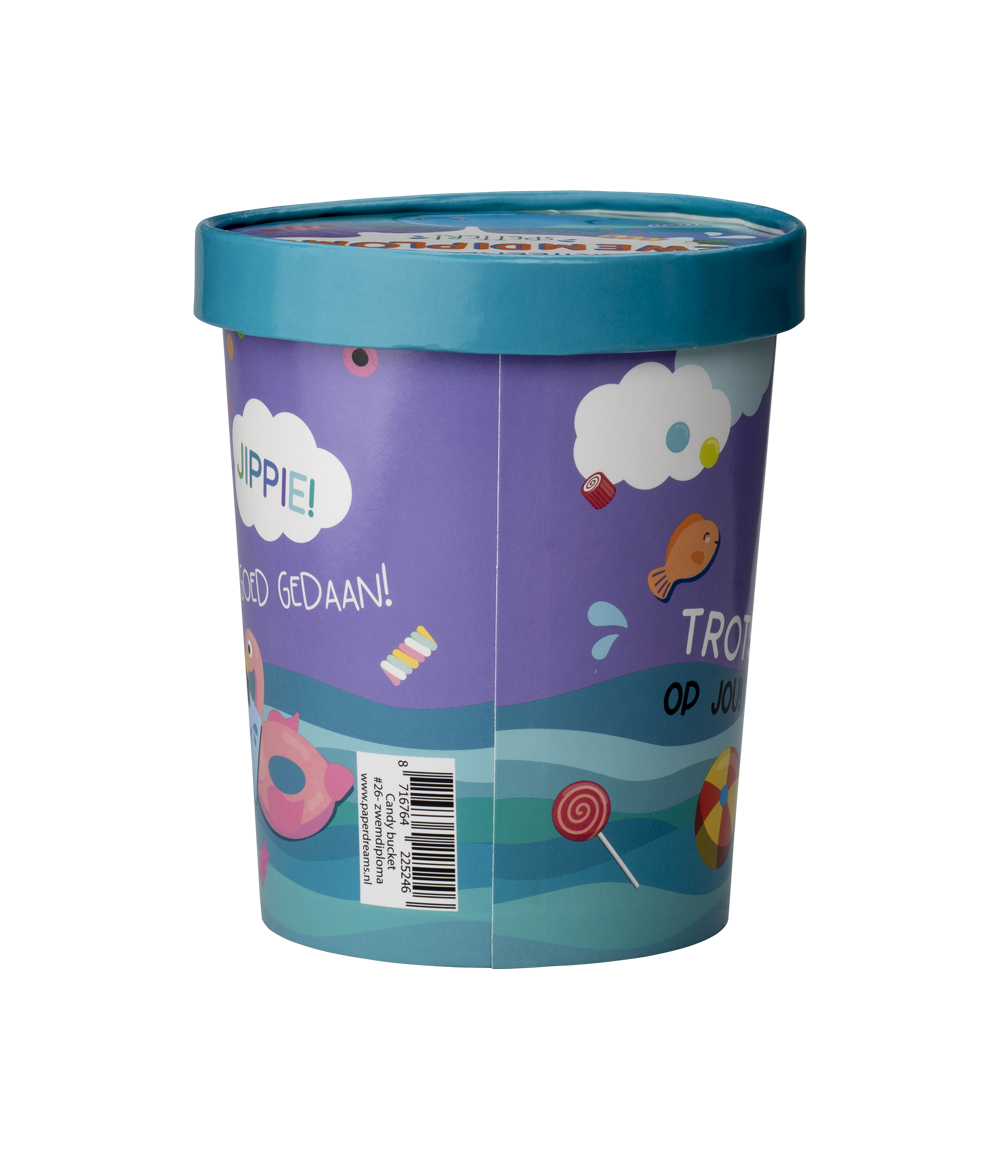 De vrolijke candy buckets zijn een echte eyecatcher in de winkel. Mede door het leuke design is deze candy bucket erg leuk om te krijgen. De snoepemmers zijn gemaakt van karton!