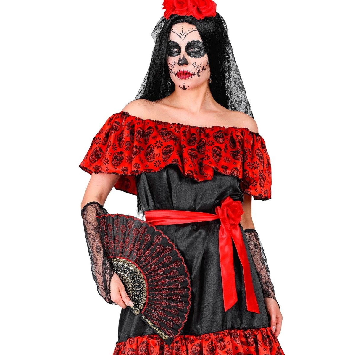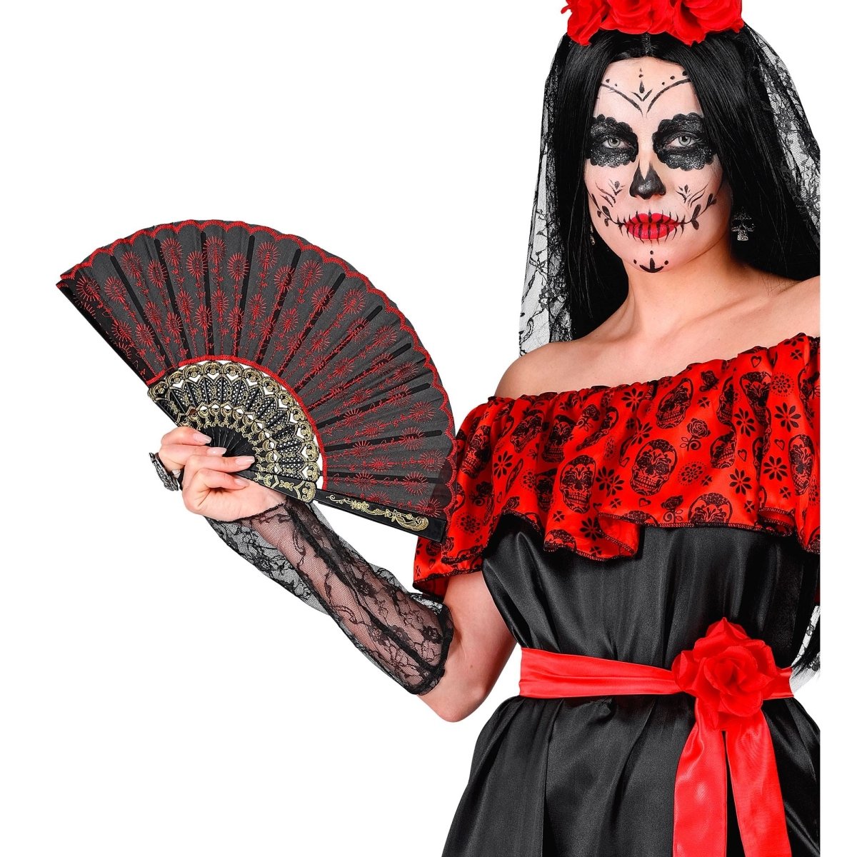 Voeg een vleugje elegantie toe aan je outfit met deze klassieke Spaanse waaier. Het rood-zwarte design geeft een stijlvolle en opvallende look, perfect voor dans, verkleedpartijen of als decoratief accessoire.