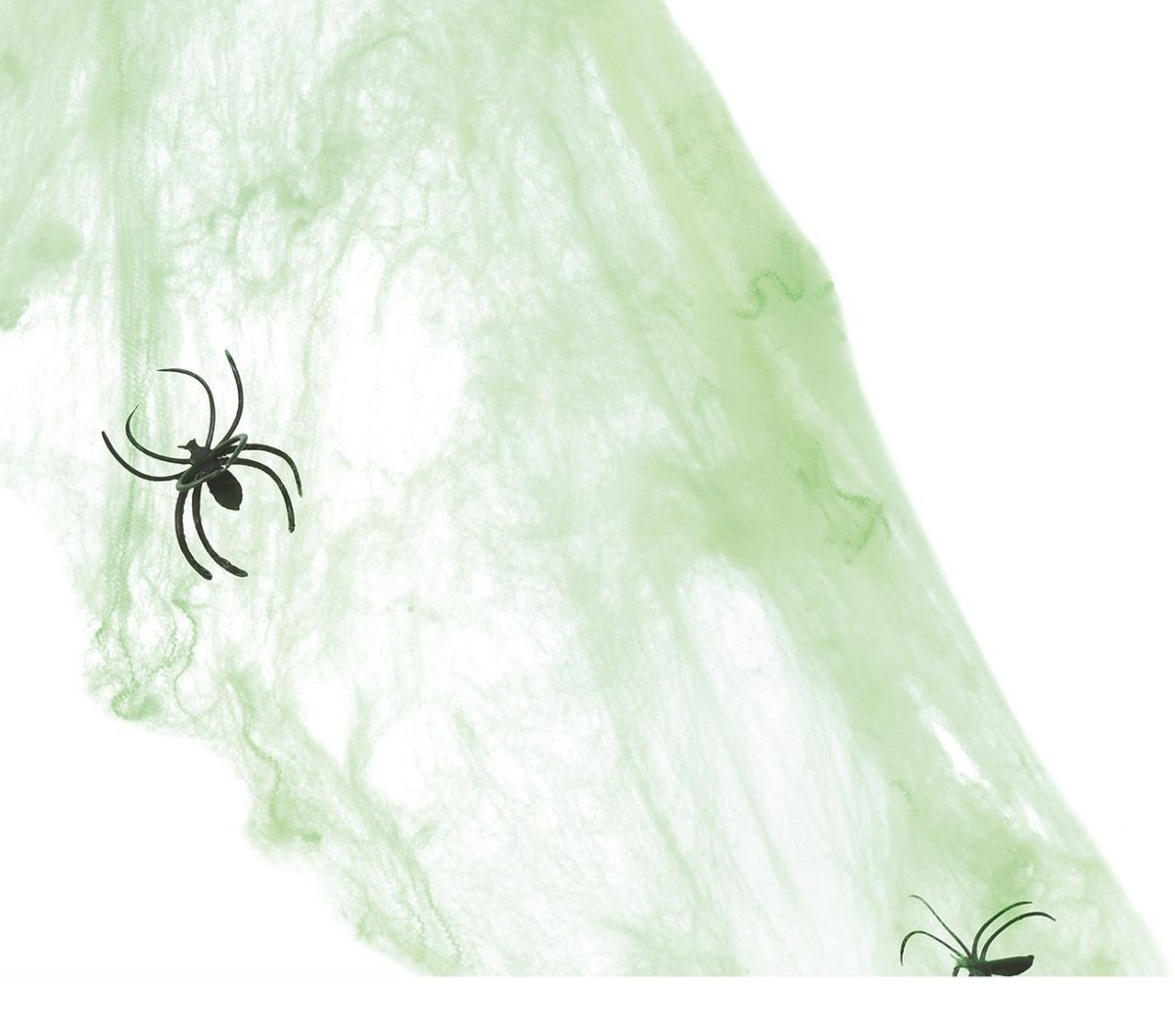 Verpakkingsinhoud: Spinnenweb Groen met 4 Spinnen 60gr
