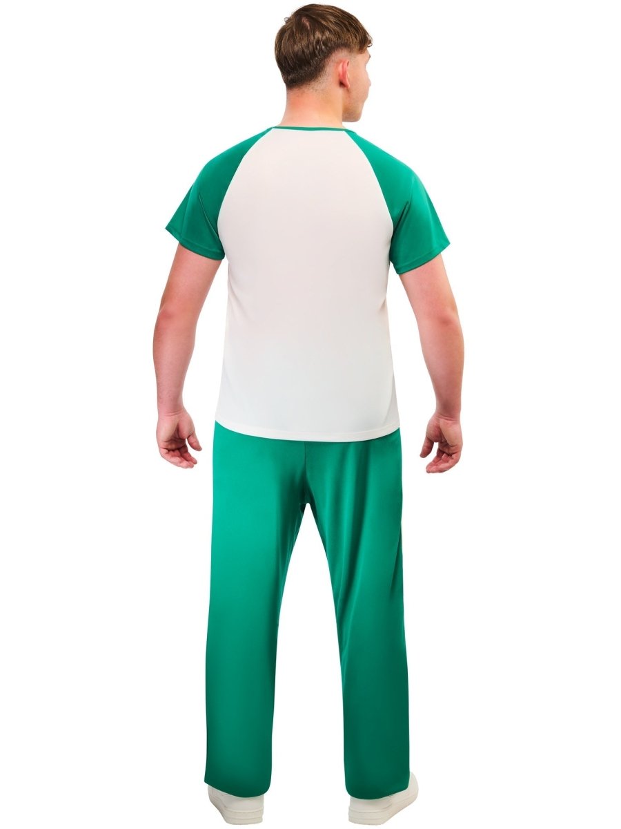 Stap in de onvoorspelbare wereld van Squid Game met deze set bestaande uit broek, T-shirt en jas. Elk detail nodigt je uit om de spannende, hoog inzetten drama van overleven en strategie te beleven – overleef jij het?