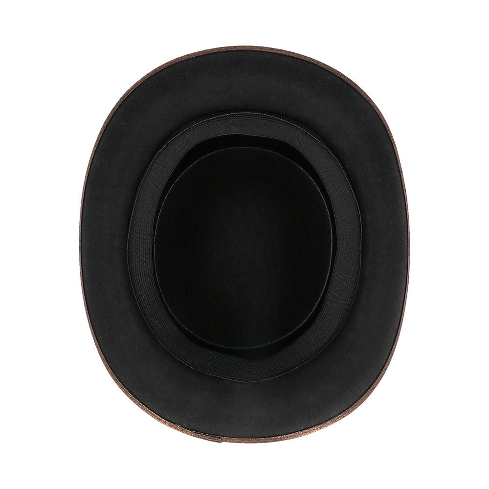 • Type: hoge Steampunk-hoed met bronzen leatherlook details en studs