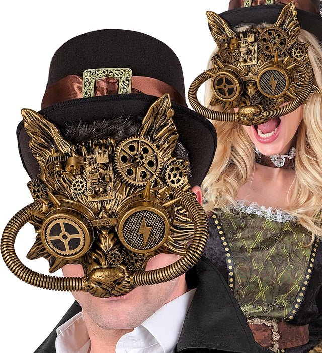 Maak je outfit compleet met dit opvallende steampunk masker in de vorm van een vos. Het gouden ontwerp geeft een mysterieuze en stijlvolle uitstraling, ideaal voor Halloween, cosplay of themafeesten.