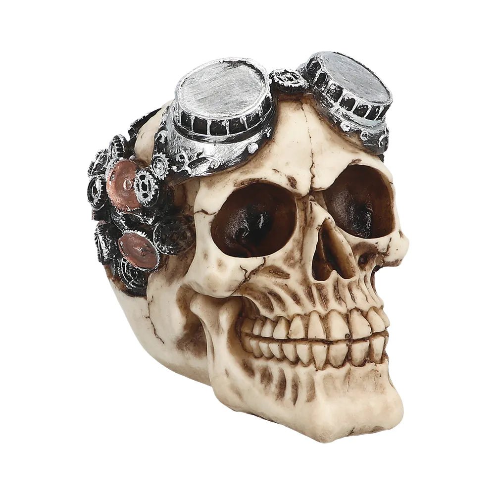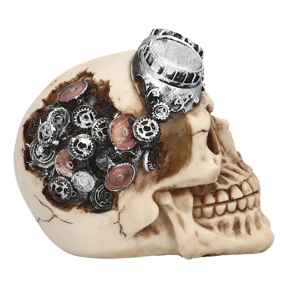 Enge decoratie voor een eng halloween feest of een duistere decoratie voor een industrieel Steampunk themafeest? Deze coole steampunk skull met tandwieltjes past voor beide thema's. De schedel is gemaakt van stevig materiaal en past perfect als versiering in huis of op tafel.