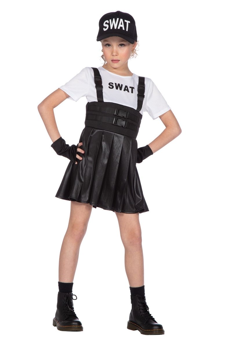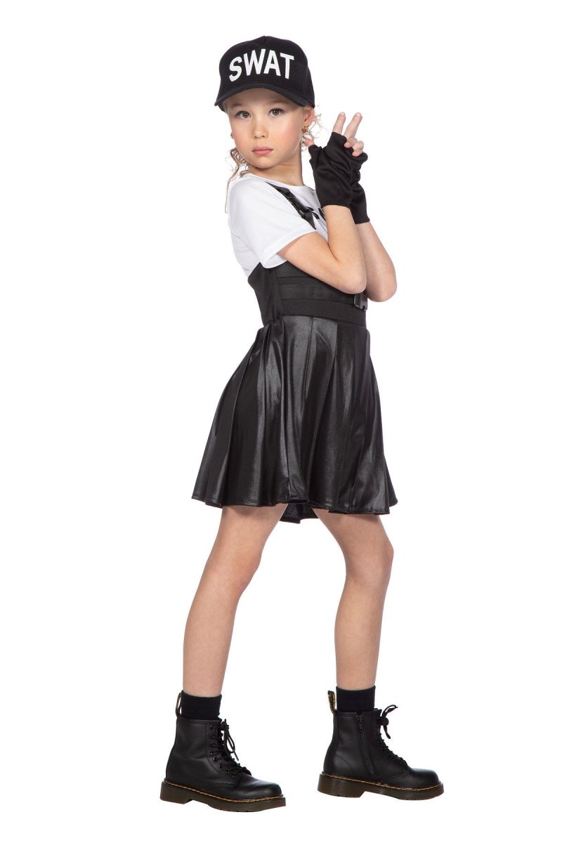 Stoer zwart SWAT-jurkje voor kinderen, perfect voor verkleedfeestjes of thema-evenementen.