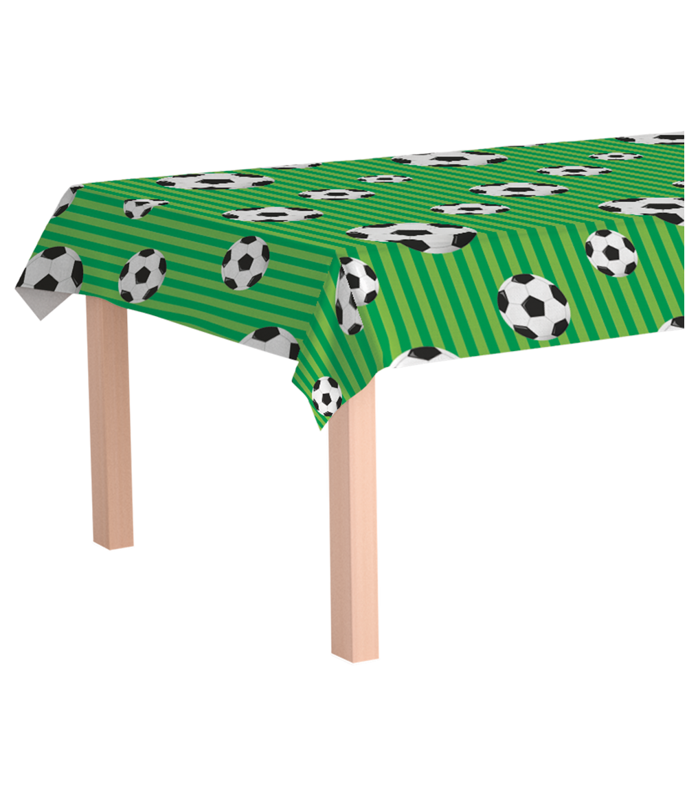 Dankzij het royale formaat van 137 × 274 cm past Table cloth – Football op vrijwel elke feesttafel. Het is gemaakt van stevig en licht PE-materiaal, waardoor het praktisch, afneembaar en ideaal voor drukke feestjes is.