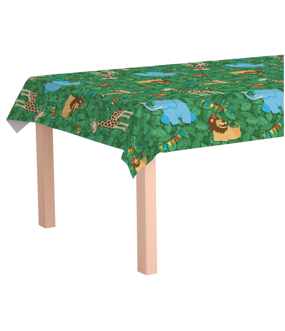 Breng jouw feesttafel helemaal tot leven met dit vrolijke tafelkleed in Jungle-thema! In één oogopslag creëer je een speelse, avontuurlijke sfeer vol tropische dieren en groen — perfect voor kinderfeestjes, themafeestjes of een zomerse party. Combineer het tafelkleed met de bijpassende bordjes, bekertjes, servetten en decoratie uit dezelfde serie voor een volledig stijlvol Jungle-feest.