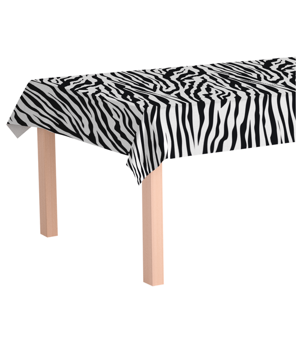 Dankzij het royale formaat van 137 × 274 cm past Table cloth – Zebra op vrijwel elke feesttafel. Het is gemaakt van duurzaam PE-materiaal, waardoor het licht, stevig en eenvoudig af te nemen is.