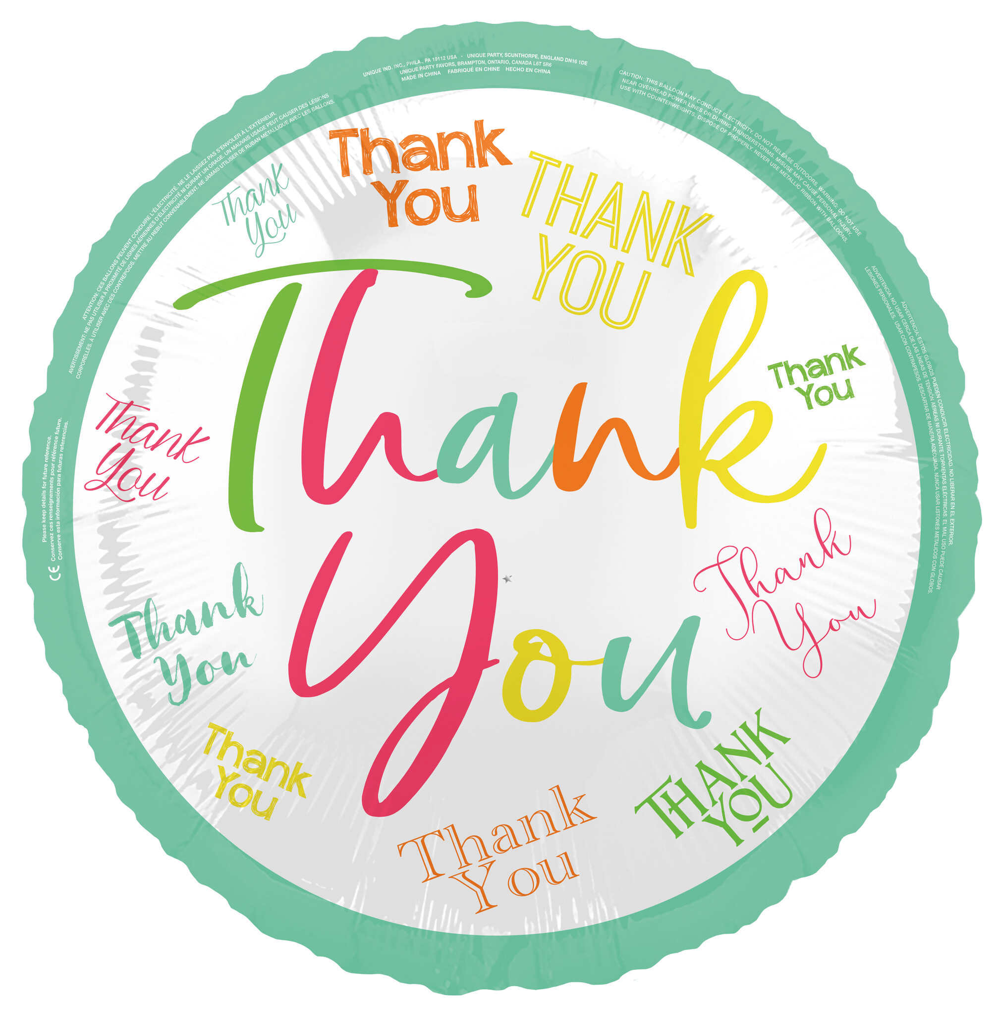 Thank You Helium Ballon Gekleurd 45cm