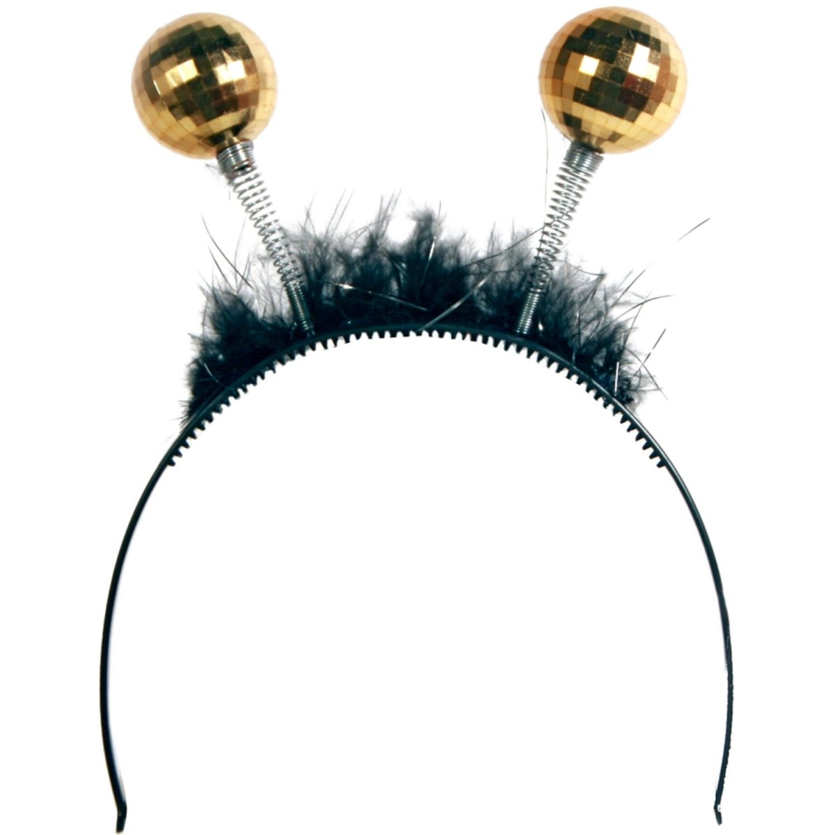 Deze opvallende tiara met zwart bont en gouden discoballen is een feestelijke accessoire voor een glamoureuze look. Perfect voor een themafeest, Carnaval of Oud & Nieuw.