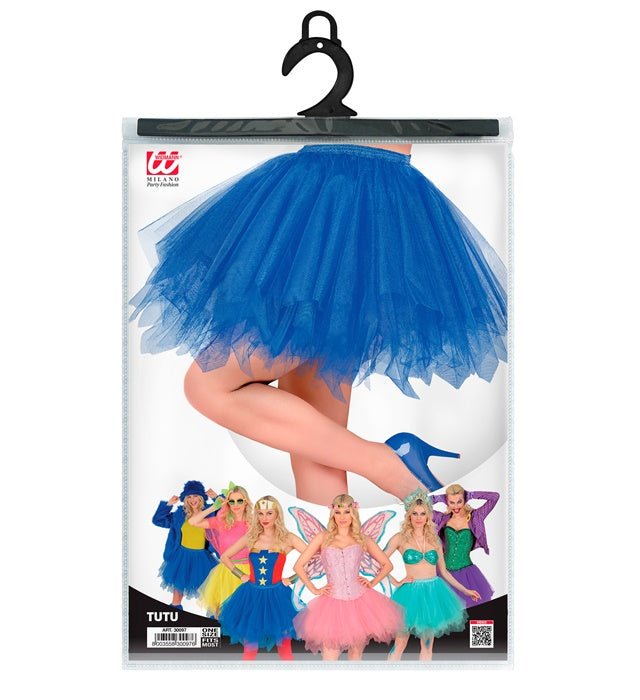 Deze blauwe tutu is een compleet kledingaccessoire voor verkleed- of feestdoeleinden.