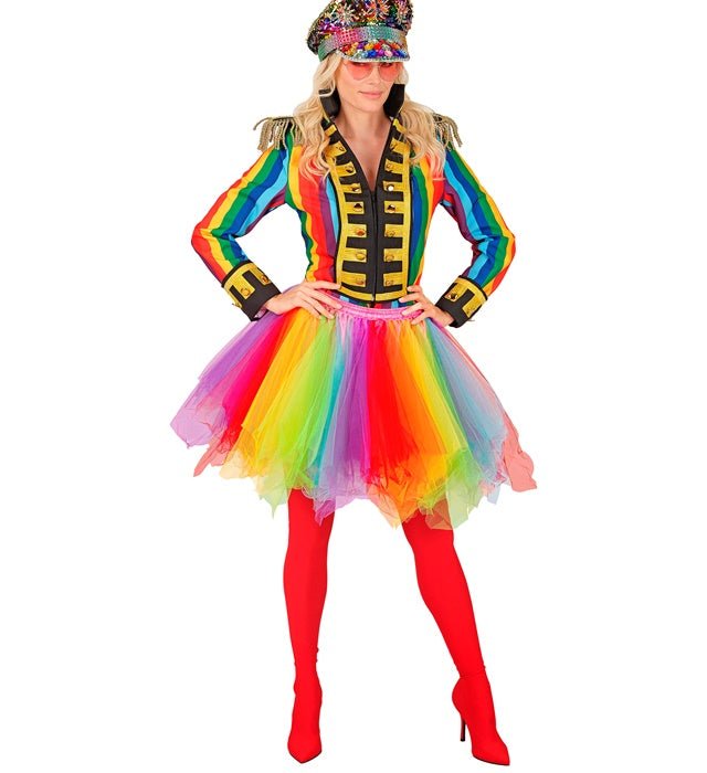 Deze regenboog tutu zorgt direct voor een vrolijke en opvallende look en is perfect voor feestelijke en kleurrijke gelegenheden.