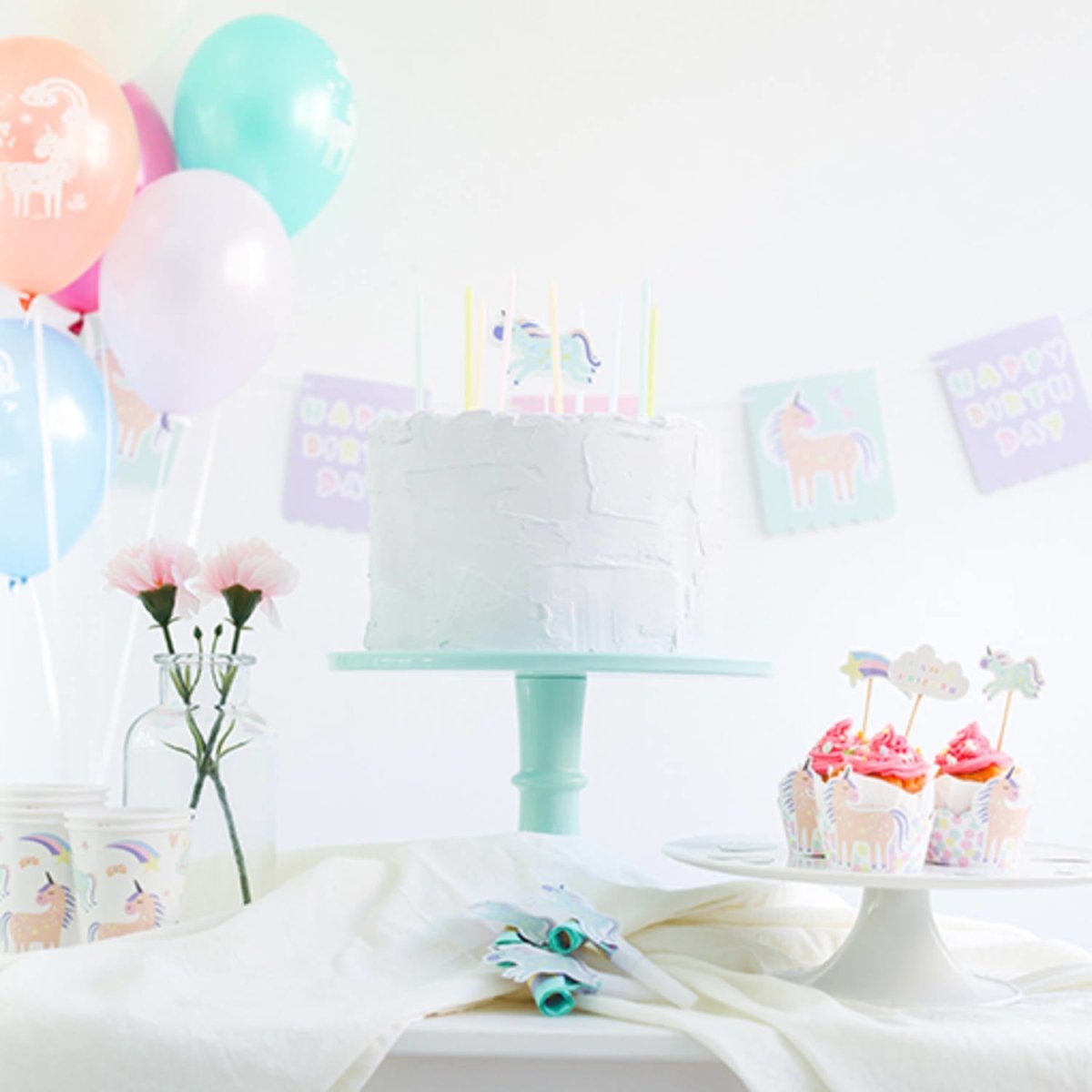Kaarsen Unicorns & Rainbows 10cm - 11 stuks. Inhoud: 11 kaarsen en 10 kaarsenhouders. Kleur: Meerkleurig. Bijvoorbeeld te gebruiken tijdens de volgende feestgelegenheid/feestgelegenheden: Kinderfeestje. Elke kaars is 10 cm lang. Het artikel is gemaakt van wax.